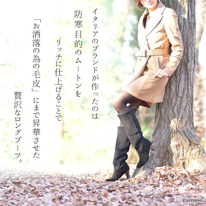 4. 22-25.5cm|6cmヒール 折り返して2wayで履けるムートンファーブーツ イタリア製 ロングブーツ ブランド 黒 ブラック キャメル ダーク ブラウン ボルドー カーキ グレー