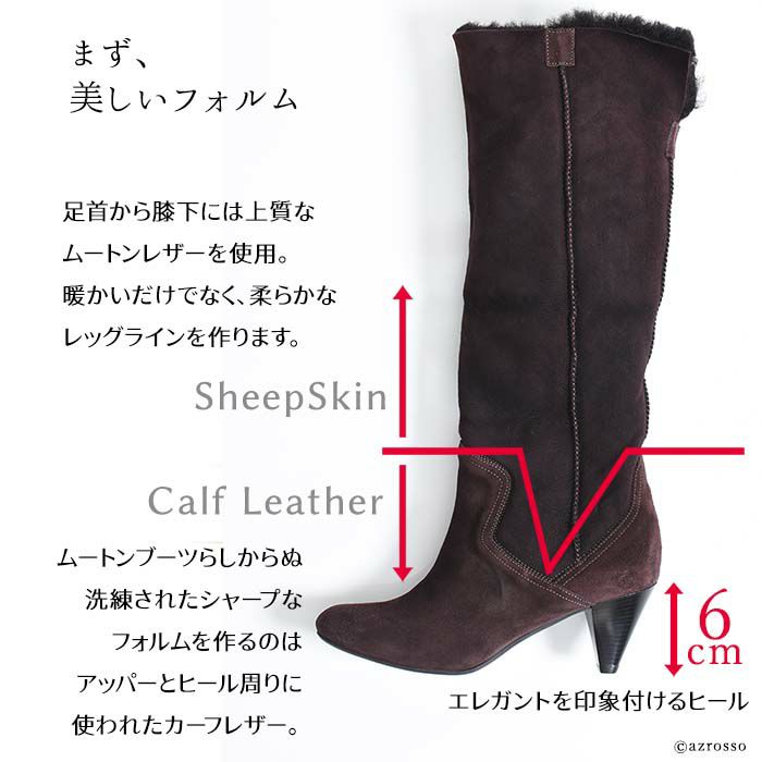 3. 22-25.5cm|6cmヒール 折り返して2wayで履けるムートンファーブーツ イタリア製 ロングブーツ ブランド 黒 ブラック キャメル ダーク ブラウン ボルドー カーキ グレー