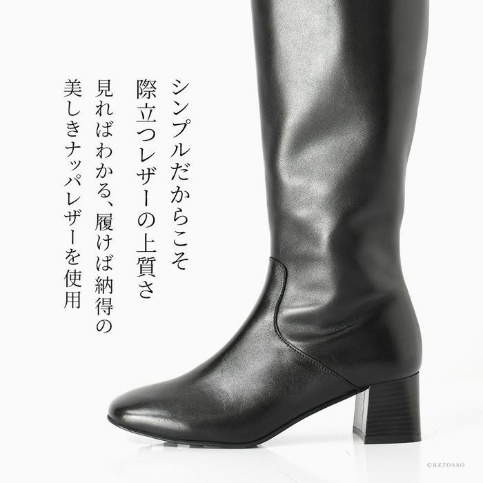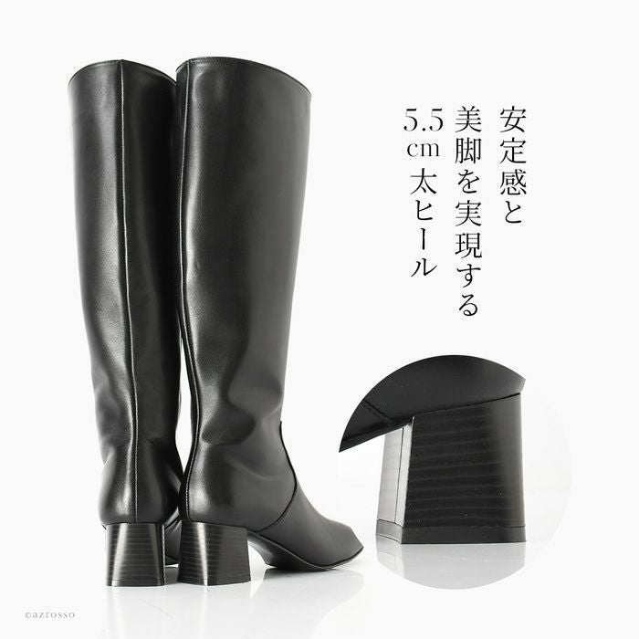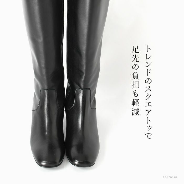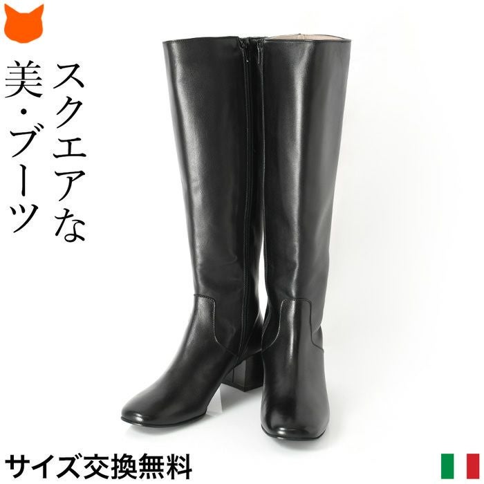 23cm-26cm│スクエアトゥ ロングブーツ チャンキーヒール 5cm 6cm 太ヒール 本革 ジョッキーブーツ イタリア製 ブランド CORSO ROMA 9 コルソローマ ノーヴェ 黒 ブラック