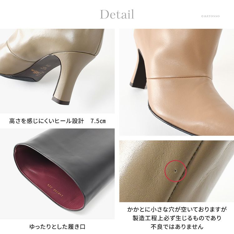 グッチの靴工房をつとめた職人が立ち上げたブランド。イタリアのトップクラスのレザーと一流の仕立てが貴族のように美しいブーツを作り上げました。このクオリティをメゾンブランドで買おうとしたらとてもこのプライスでは無理でしょう。「本物を知る女性」に履いて頂きたいロングブーツです。