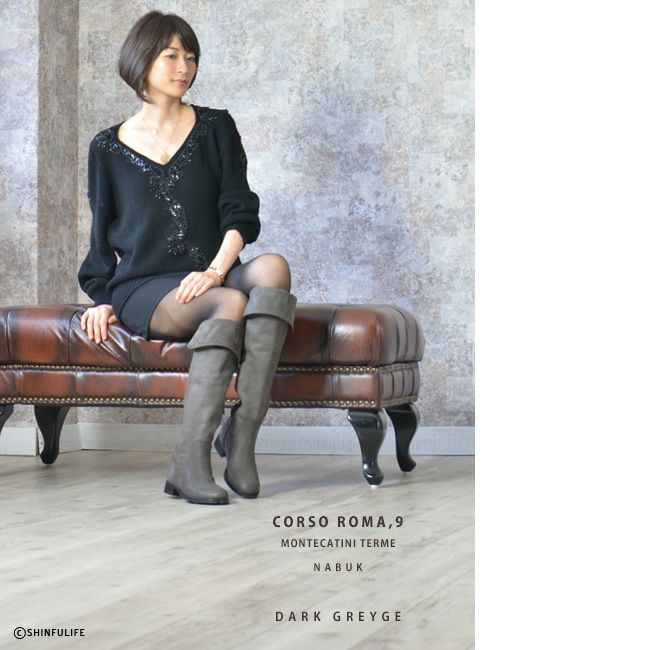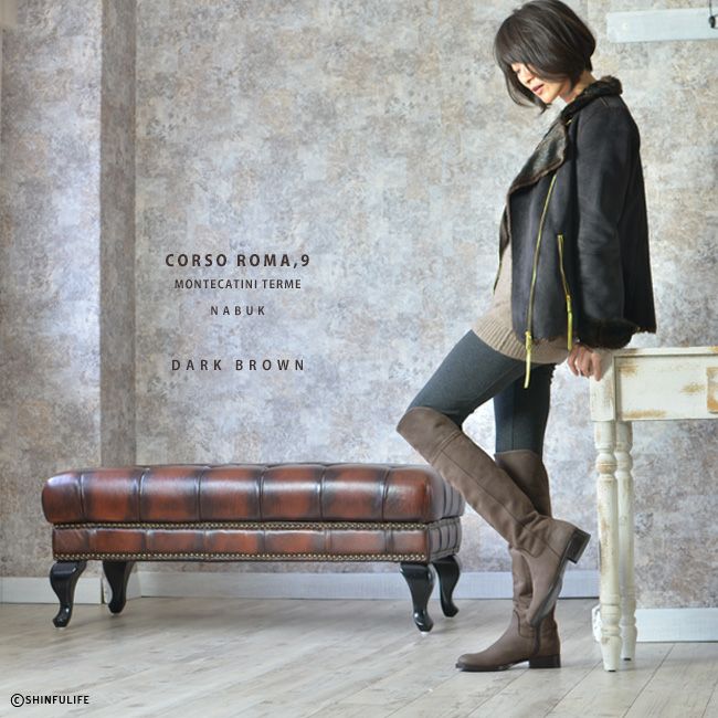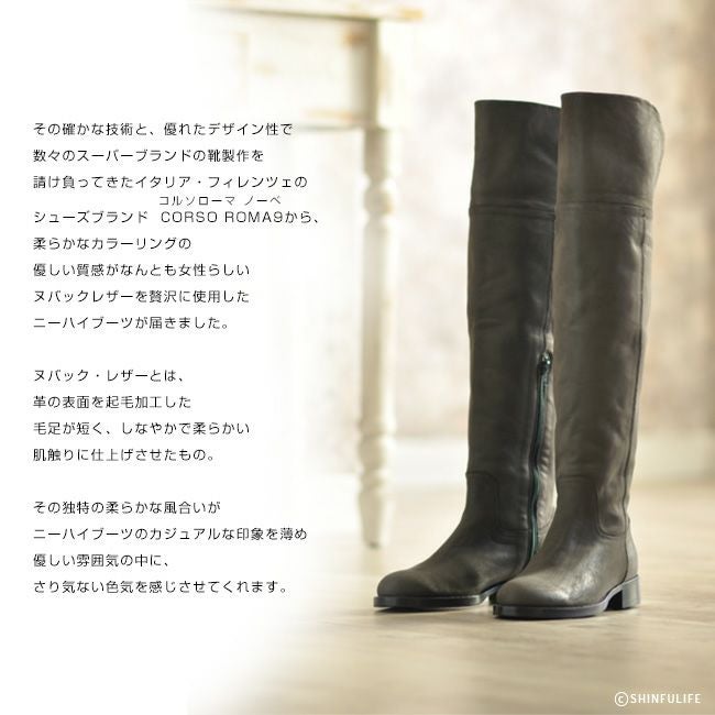 【22cmのみ】22-25cm|ヒール3cm 2way ニーハイブーツ 本革レザー ロングブーツ サイドジップ ファスナー イタリア製 ブランド コルソローマ9 CORSO ROMA 9 ブラウン