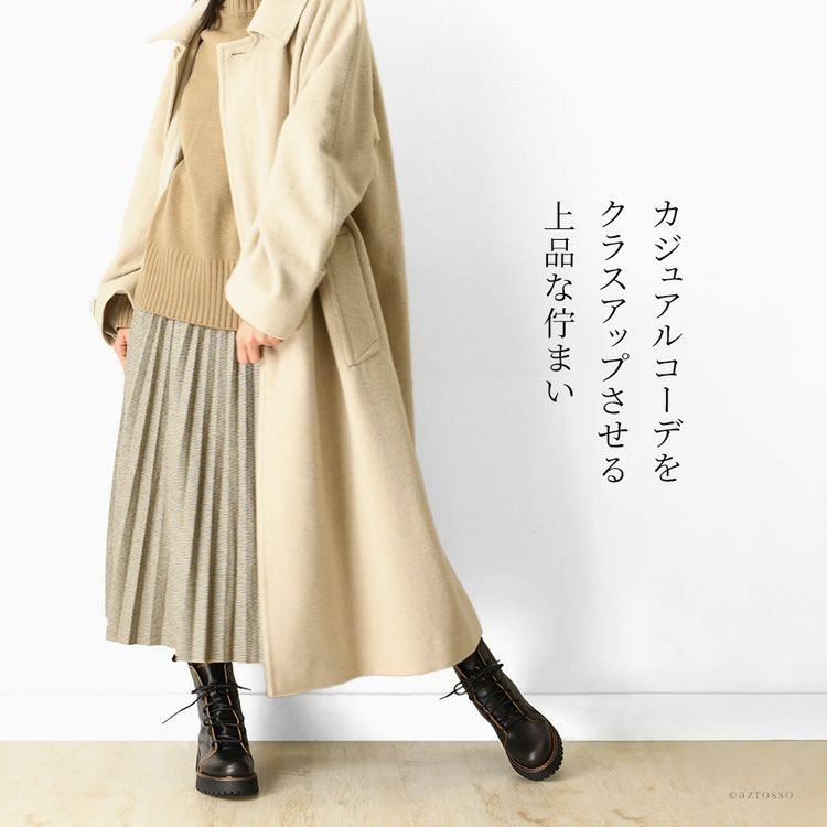 きれいめのプリーツスカート+ニットの定番コーデに、すこしハードなレースアップを合わせてクールフェミニンな休日スタイル。ブーツは非常に柔らかくコンフォートな履き心地のイタリア製。長時間のお出かけも苦になりません。