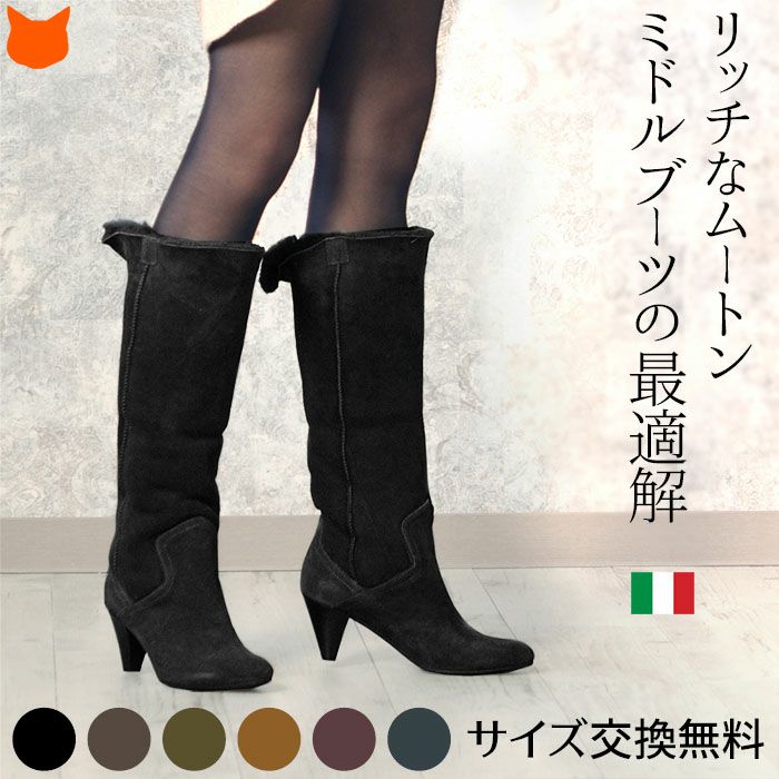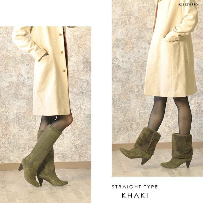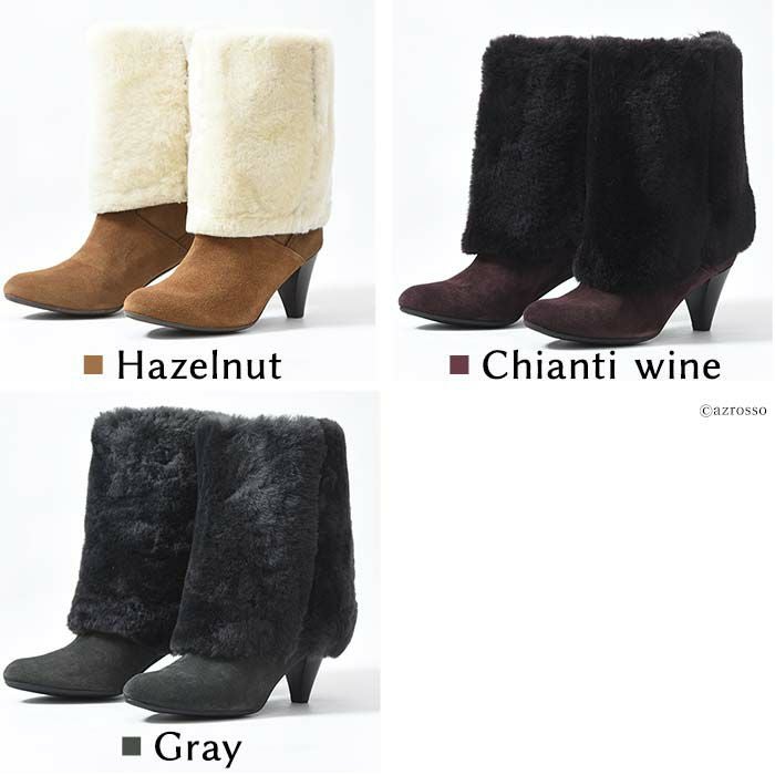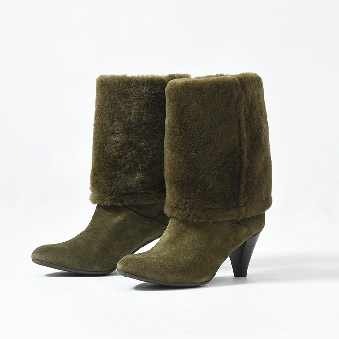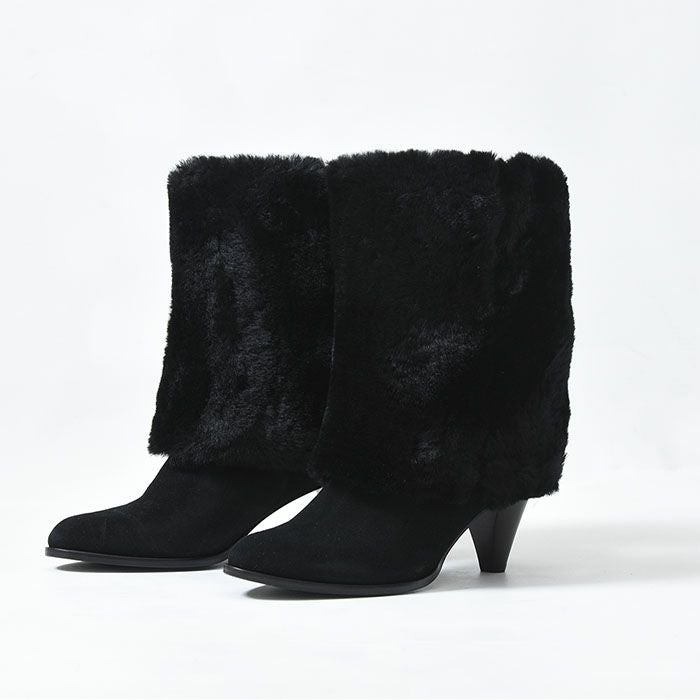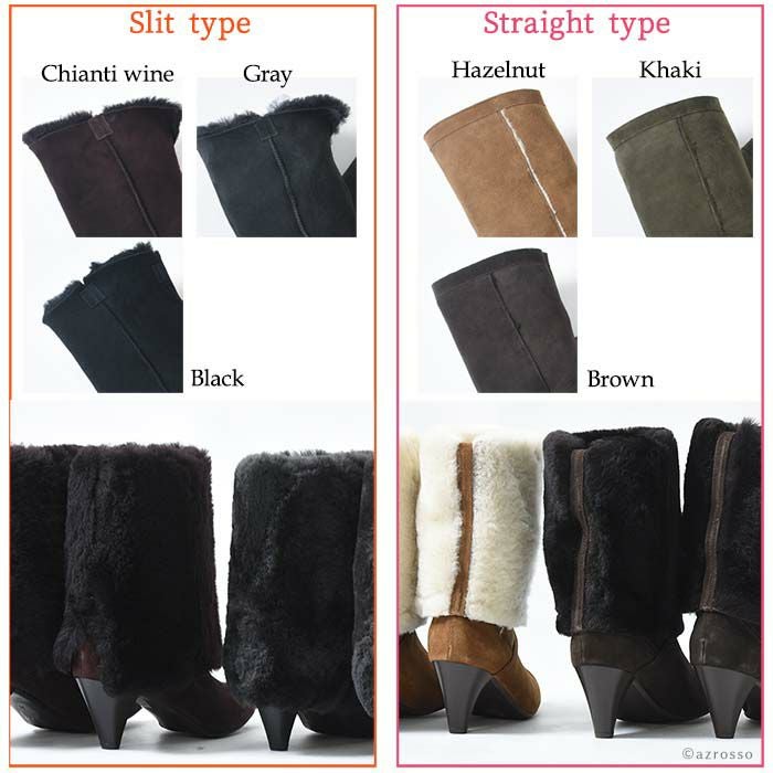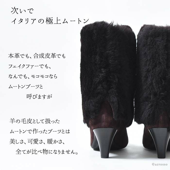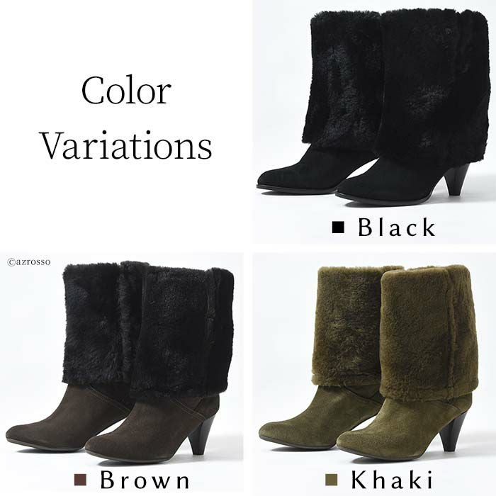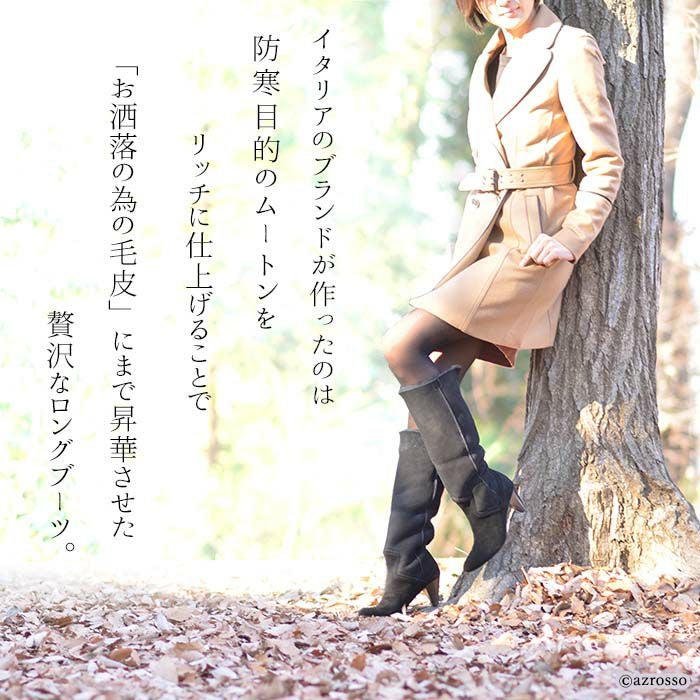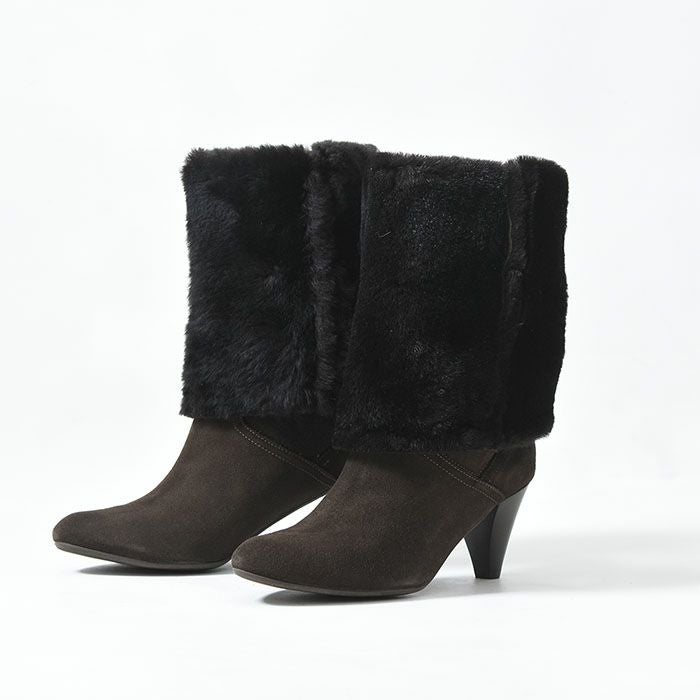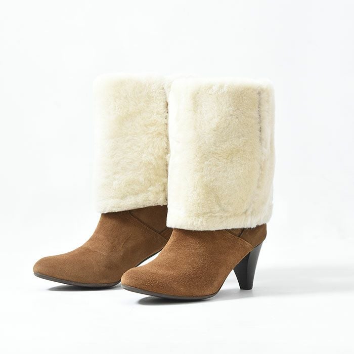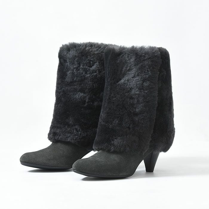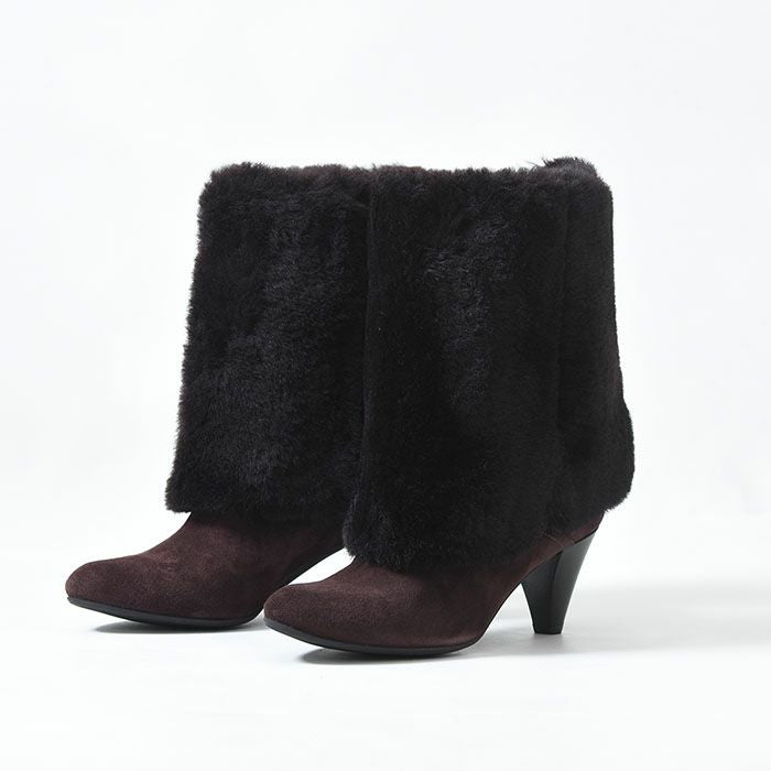 22-25.5cm|6cmヒール 折り返して2wayで履けるムートンファーブーツ イタリア製 ロングブーツ ブランド 黒 ブラック キャメル ダーク ブラウン ボルドー カーキ グレー