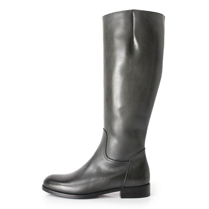 真冬でも極暖。さらに脚の太さを気にせず履けるロングブーツを世界的イタリアブランド Calpierre(カルピエッレ)から。後ろにストレッチゴム+サイドファスナー付きで脱ぎ履きもしやすいジョッキーブーツです 23cm-26cm|内側 ムートン 暖かい ジョッキーブーツ ロングブーツ ローヒール 3cm ブランド イタリア製 レザー ブラック 黒 ダークグレー