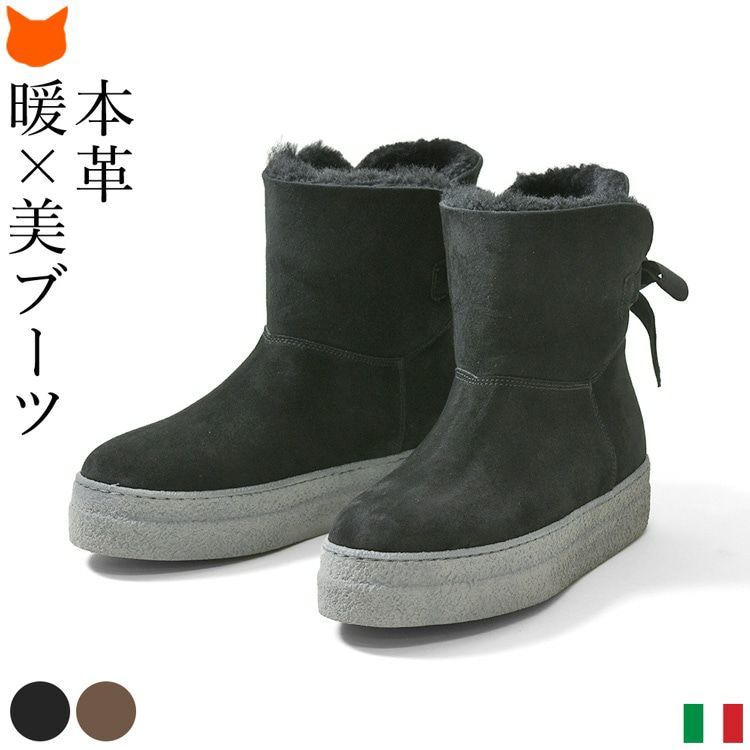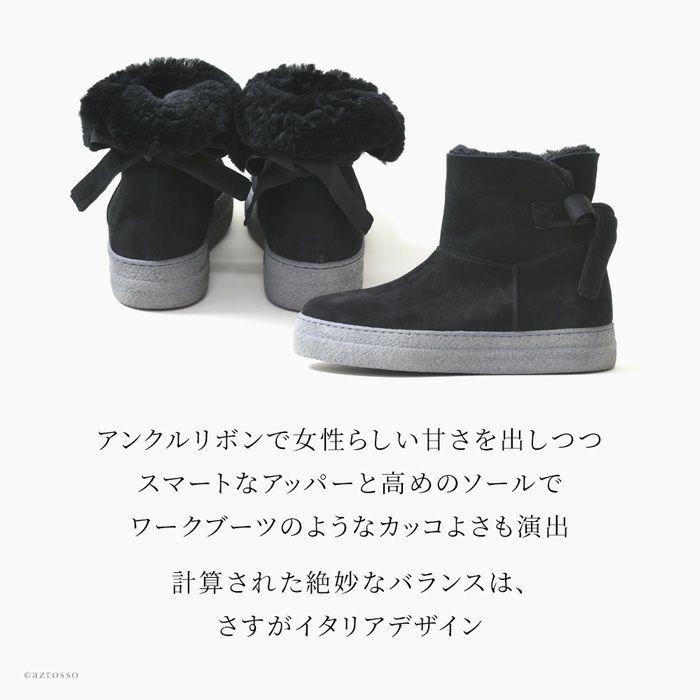 ムートン級の暖かさと美シルエットを両立したイタリアブランド ステファノガンバのリボン付きムートンブーツ。パンツもスカートもバランス良くキマるショートブーツ スエード ショートブーツ 厚底 ムートンブーツ リボン レザー 暖かい 歩きやすい 疲れない イタリア製 ブランド Stefano Gamba ステファノガンバ