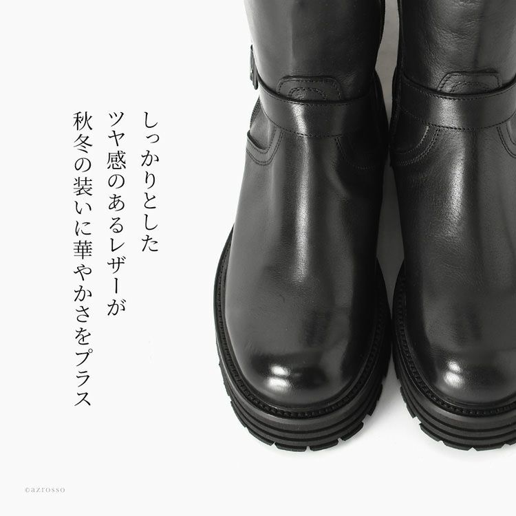 ※特価の為返品・キャンセル・交換無料サービス対応不可。※交換対応は、通常販売時のお買い物通りのご案内です。※サイズ交換希望で、ご交換希望サイズが欠品の場合は返品不可 厚底 ロングブーツ 裏ボア 暖かい イタリア製 サイドファスナー 本革 ローヒール 太ヒール 歩きやすい 裏起毛 ブーツ ロング 防寒 レザー ブラック 黒 チャンキーヒール バイカーブーツ エンジニアブーツ ミドルブーツ レディース