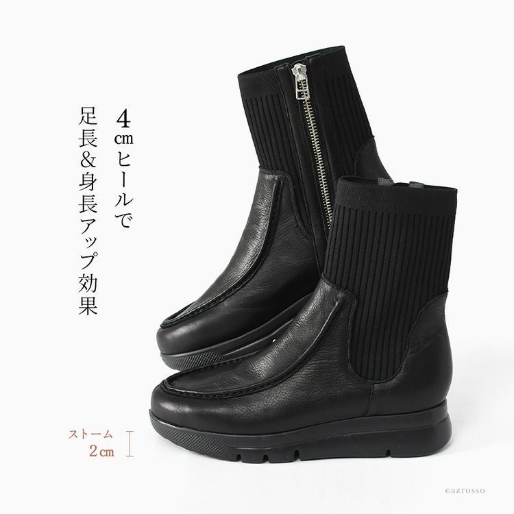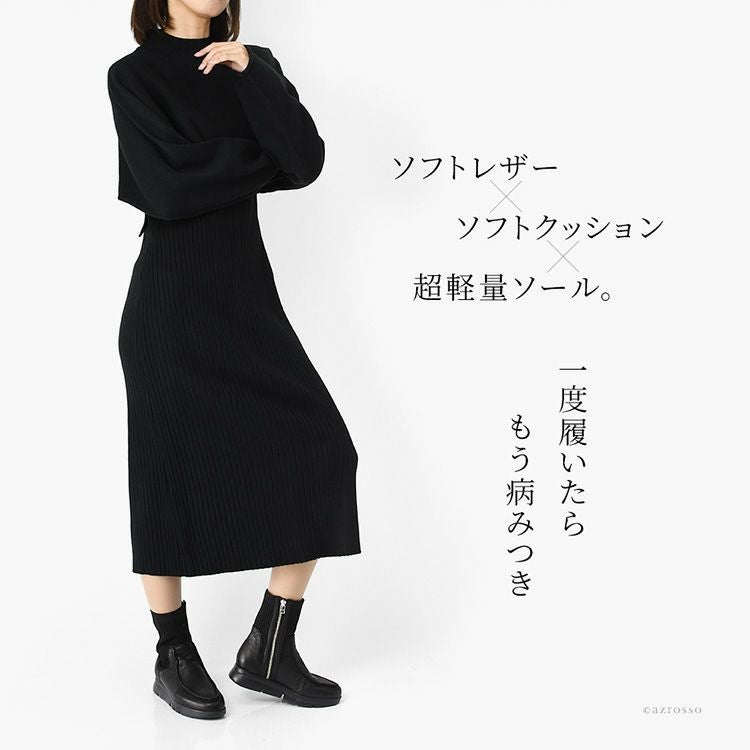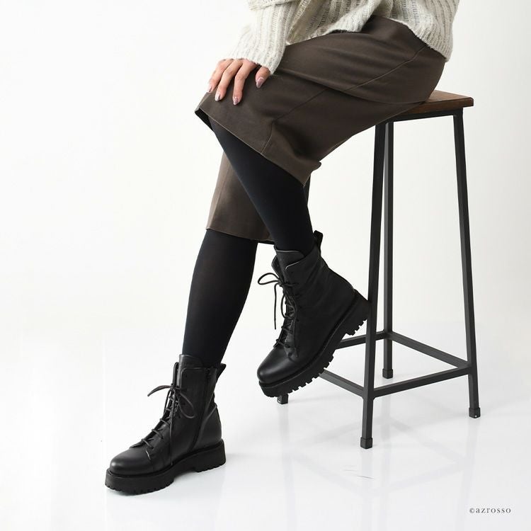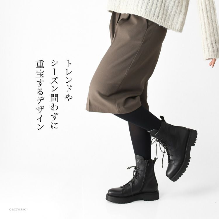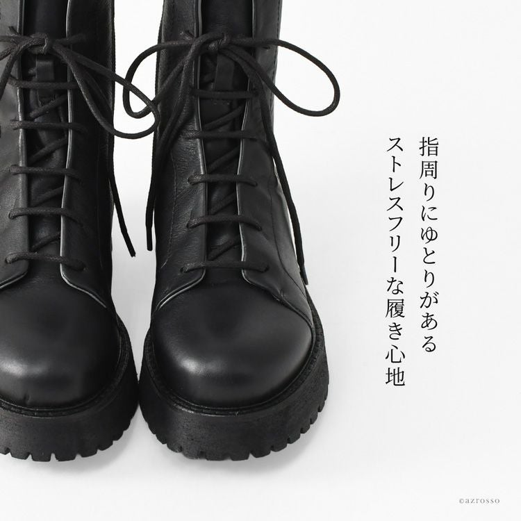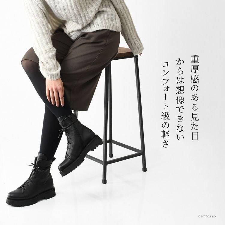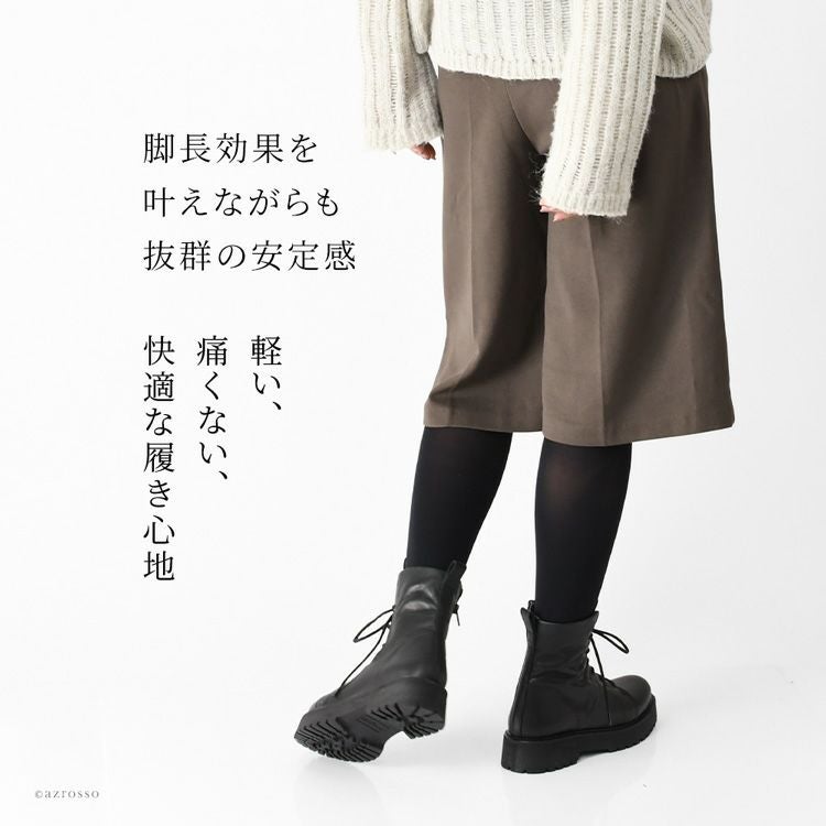 【ヒール4cm】驚きの軽さ!快適な履き心地の本革編み上げブーツ