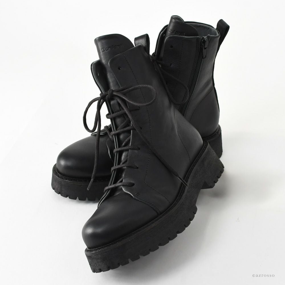【ヒール4cm】品格漂うカーフレザー。シックな大人の編み上げブーツ