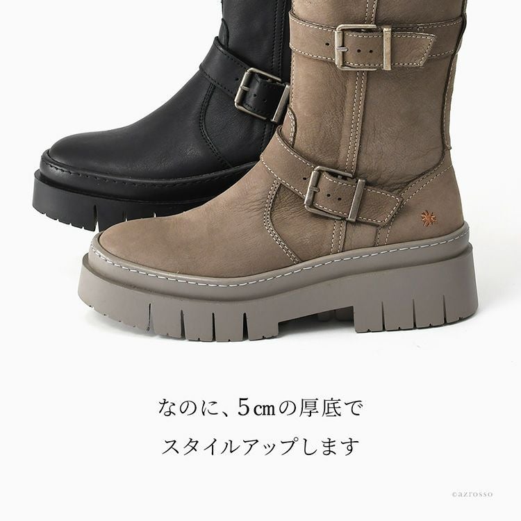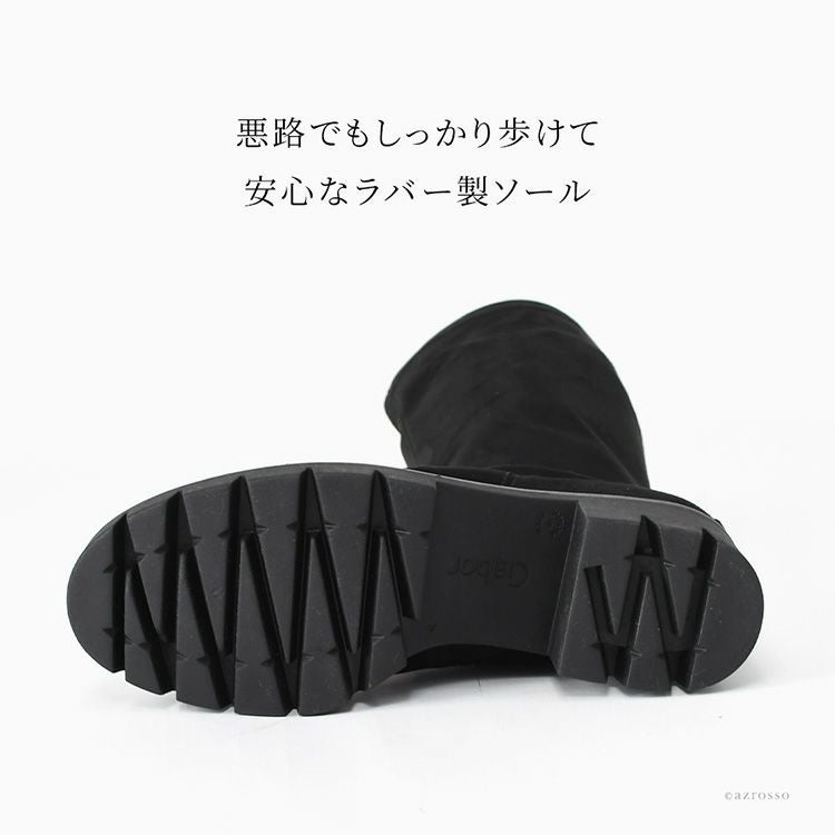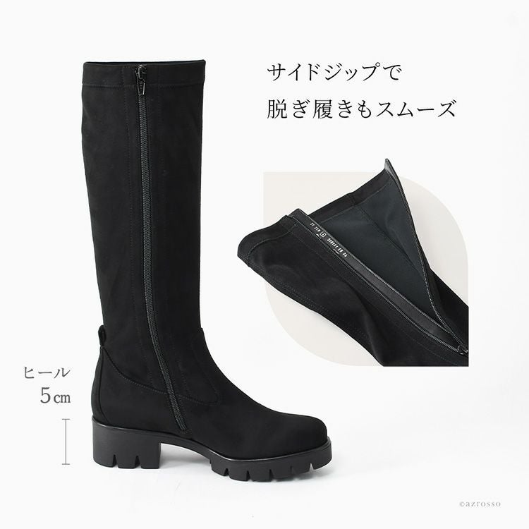 【ヒール5cm】脚が細く見える!伸びる極上レザーの厚底ロングブーツ