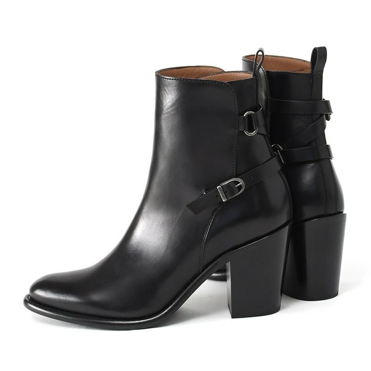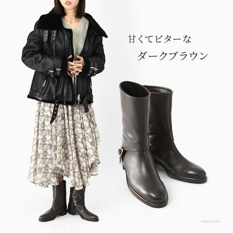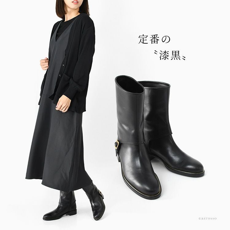 【ヒール6cm】肌にしっとり馴染む極上カーフレザーのジョッキーブーツ