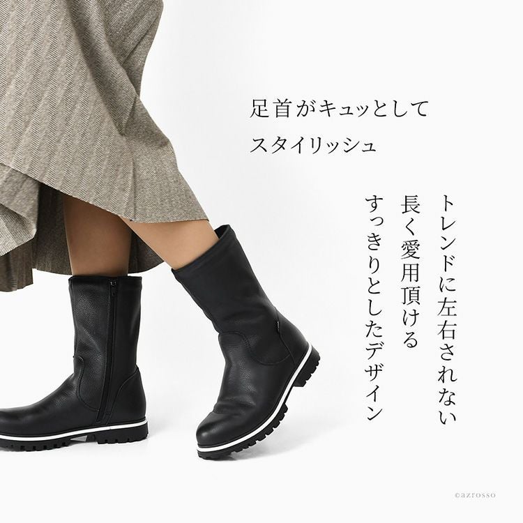 【ヒール3cm】ふくらはぎの太さも寒さも心配なし!裏ボアストレッチブーツ