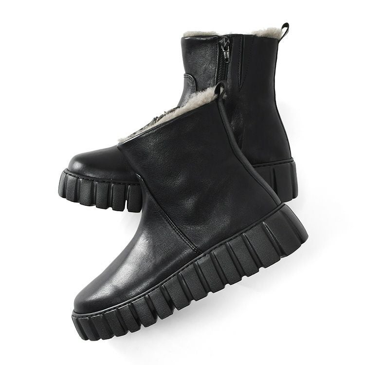 【ヒール5cm】発熱保温素材で足先ぽかぽか!凍った地面も歩きやすいショートブーツ