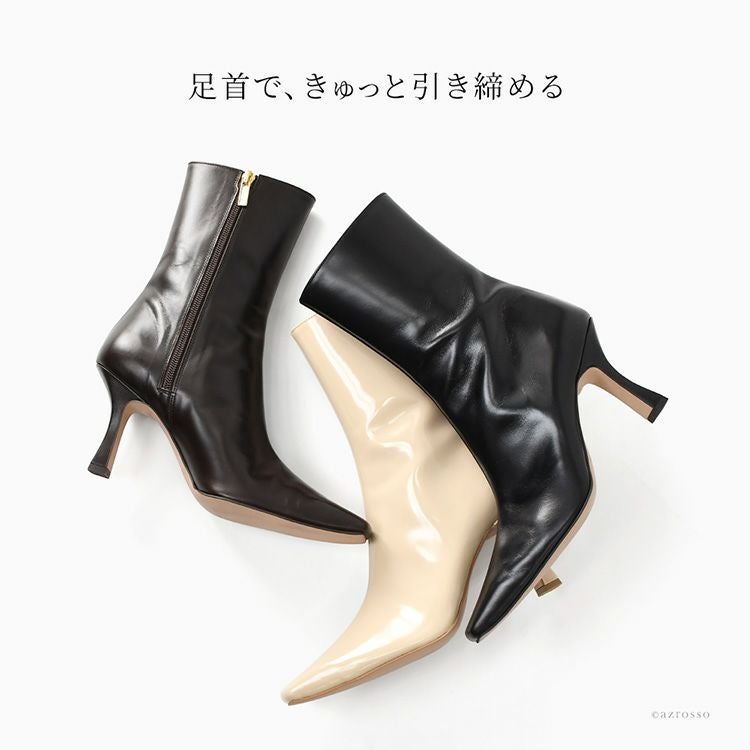 【ヒール3cm】最上級ヴィッテロレザーを生かした上質シンプルな美脚ブーツ