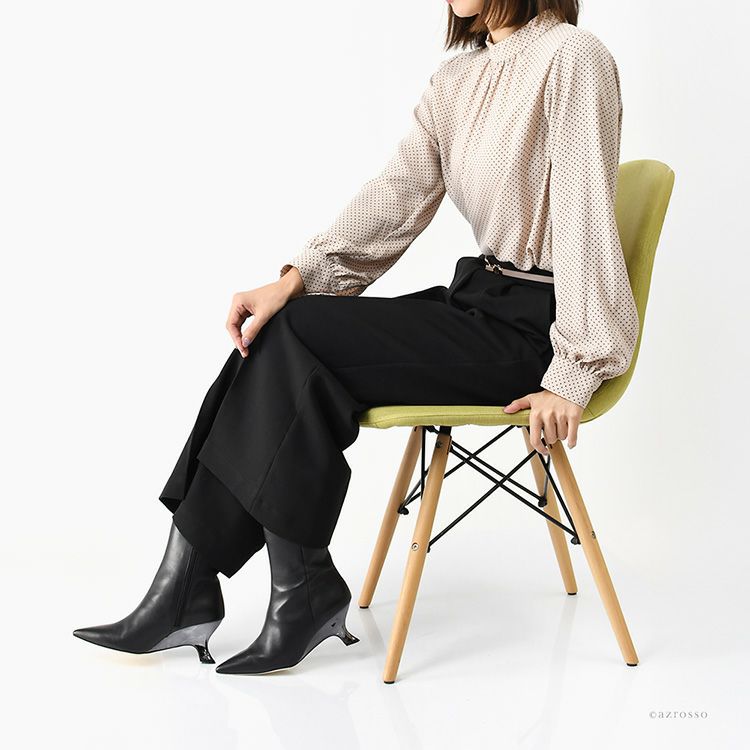 【ヒール6cm】ブーツカットシルエットのポインテッドトゥロングブーツ
