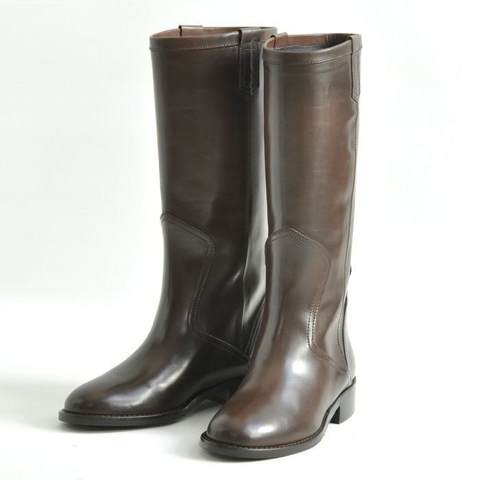 ジョッキーブーツに似た雰囲気のカッチリとしたレザーブーツですが、仔牛から採れるヴィッテロはハードレザーほどの分厚さがないため、キチッと感のあるレザーの艶やかな見た目よりも、軽く感じる、圧迫感のない優しい履き心地です。