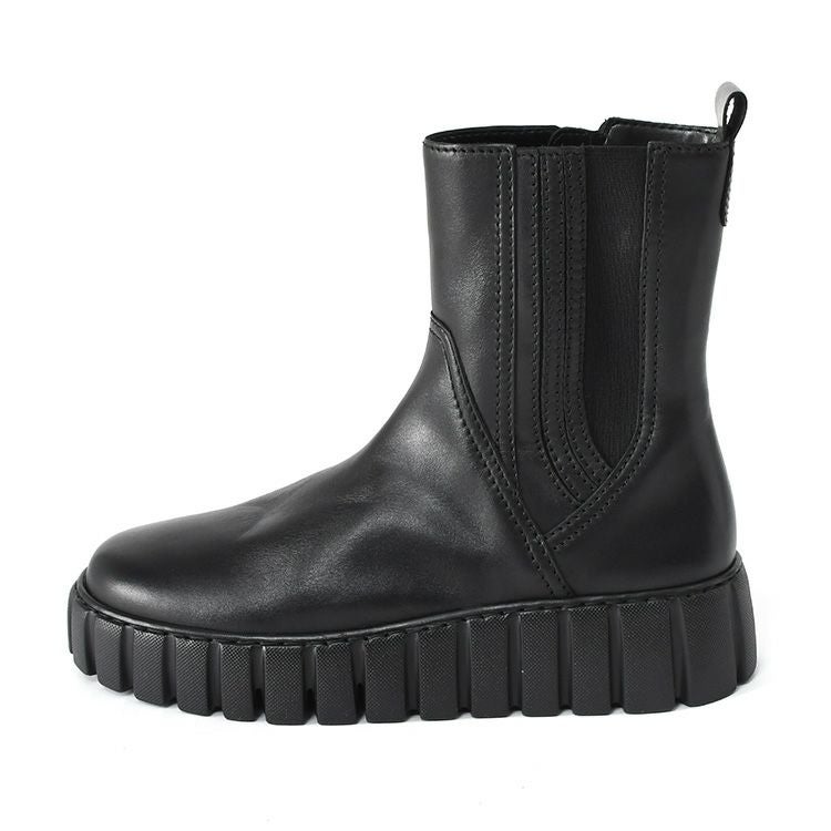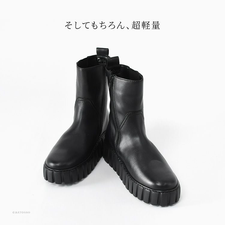 シンプルな黒の本革ショートブーツは、通勤にも旅行にもぴったり。40代・50代の女性にも似合う、上品でおしゃれなデザインです。