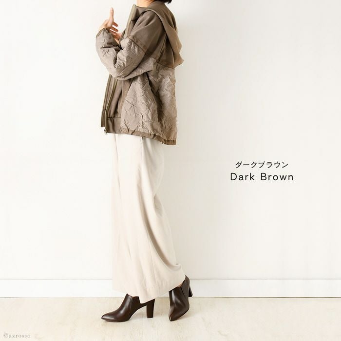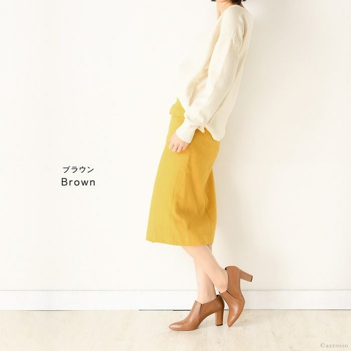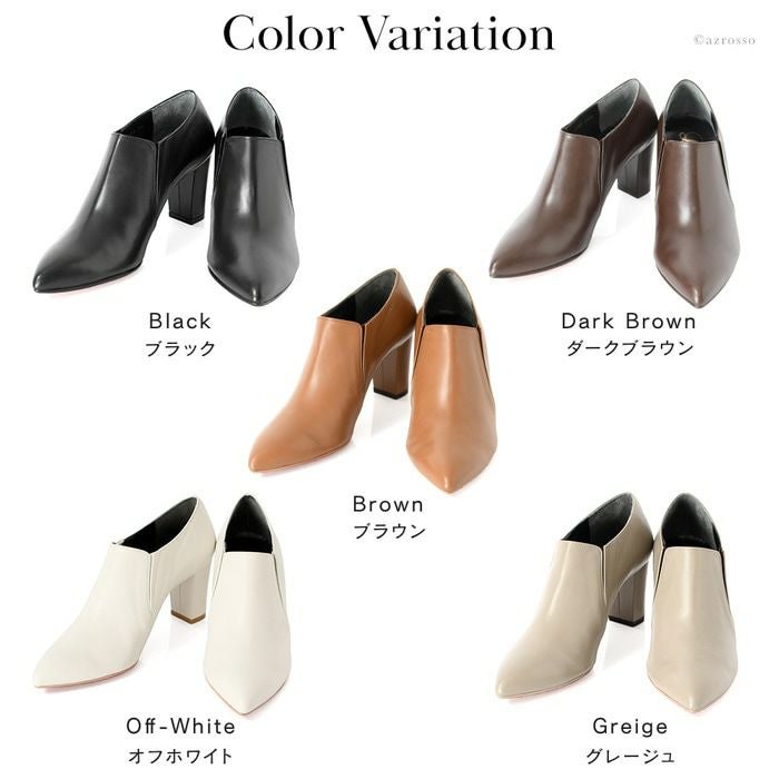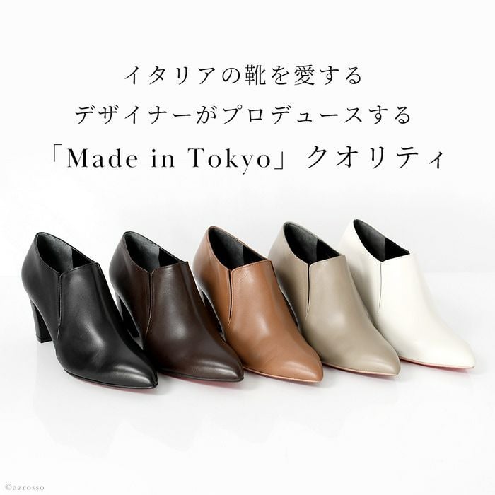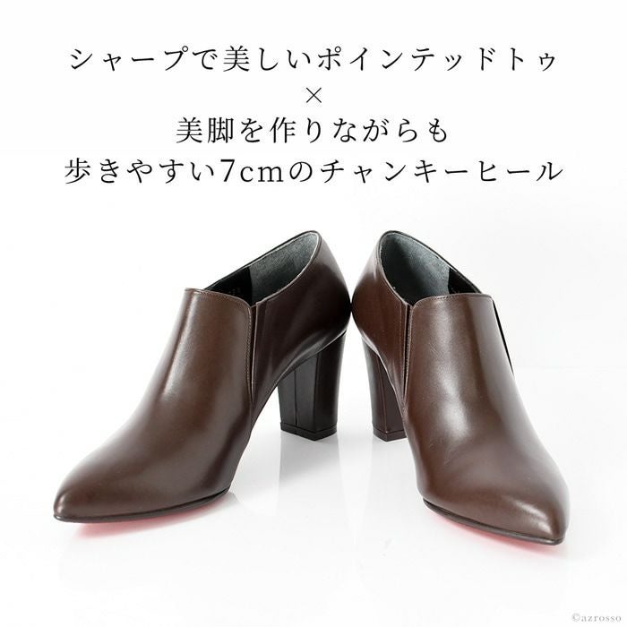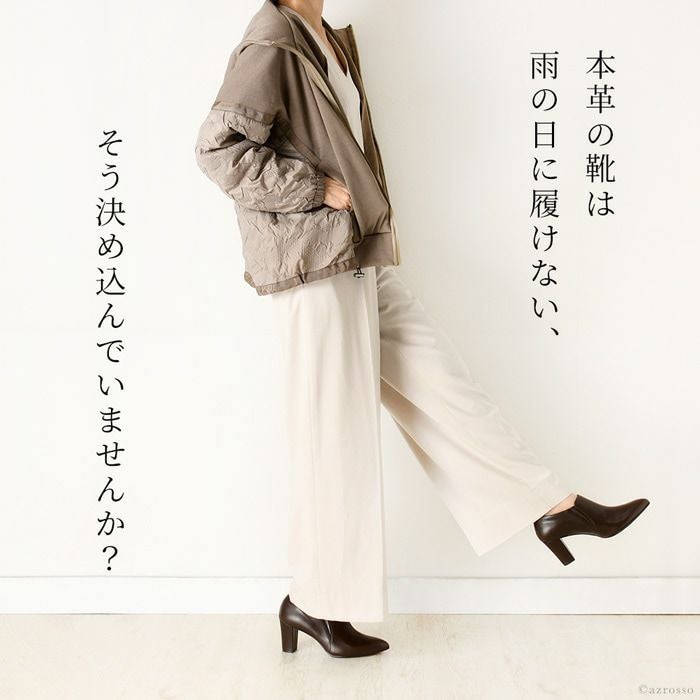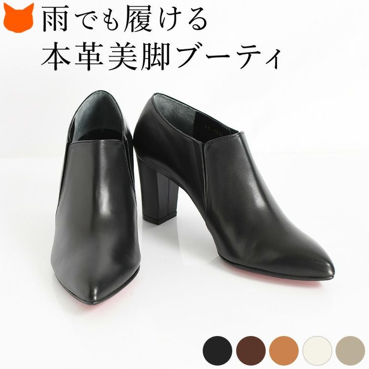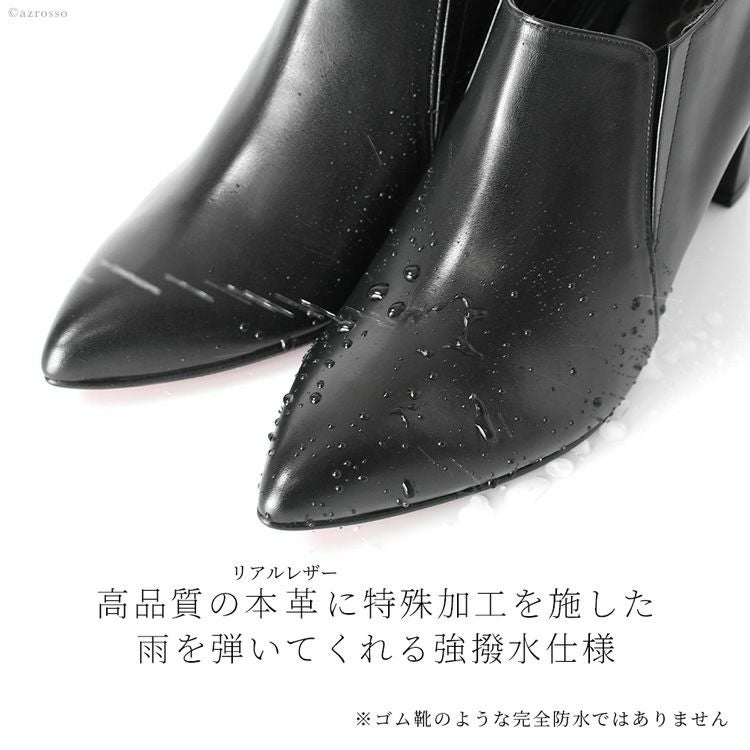 21.5cm-25cm|ヒール7cm レザー ブーティ 晴雨兼用 撥水 ショートブーツ ハイヒール チャンキーヒール ポインテッドトゥ サイドゴアブーツ 日本製 リミットティル2359