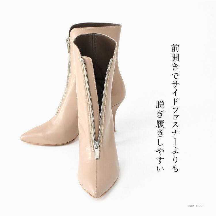 ▼特徴:フロントジップ ファスナー付き ショート ブーツ きれいめ 革 黒 ブラック グレージュ ベージュ 8cm ヒール 疲れない 小さいサイズ 大きいサイズ