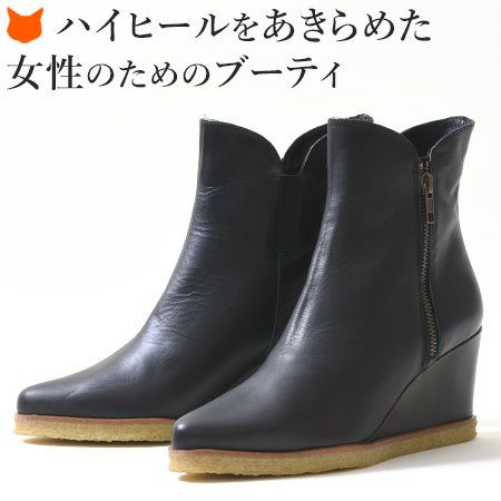 ヒールの高い靴は足も長く見えるし、エレガンス。だけど長く歩くと疲れやすいし、靴擦れも多い。そんな経験をして結局ローヒールやペタンコの靴に戻ってしまう女性にぜひ履いてほしいのが、このウェッジヒールブーティ。