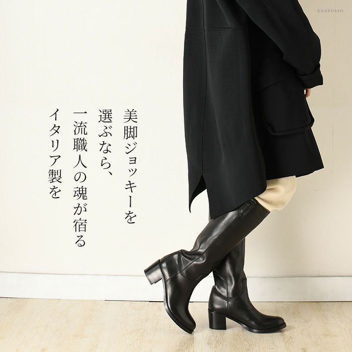【ヒール6cm】肌にしっとり馴染む極上カーフレザーのジョッキーブーツ