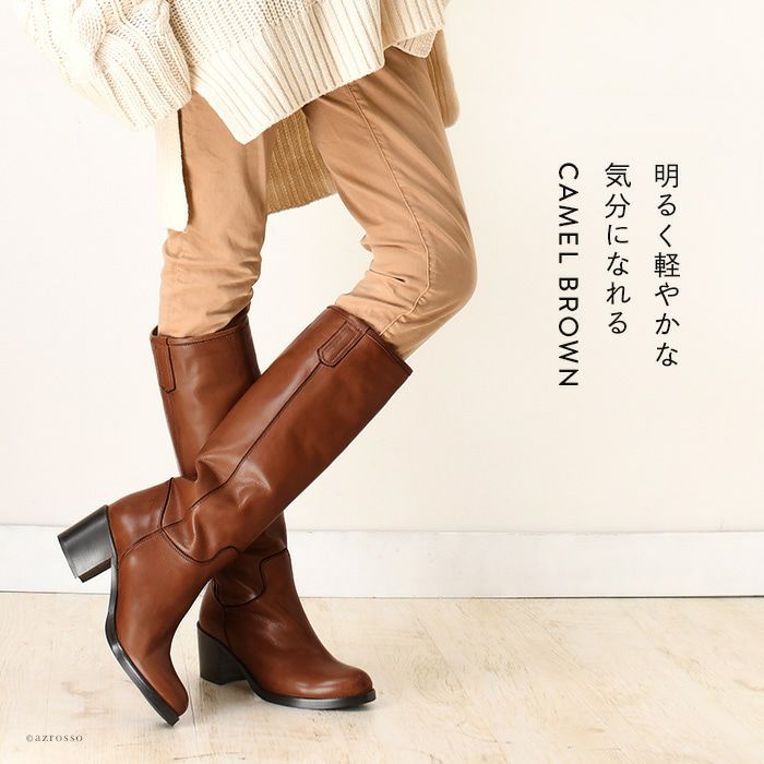 【ヒール5cm】脚が細く見える!伸びる極上レザーの厚底ロングブーツ