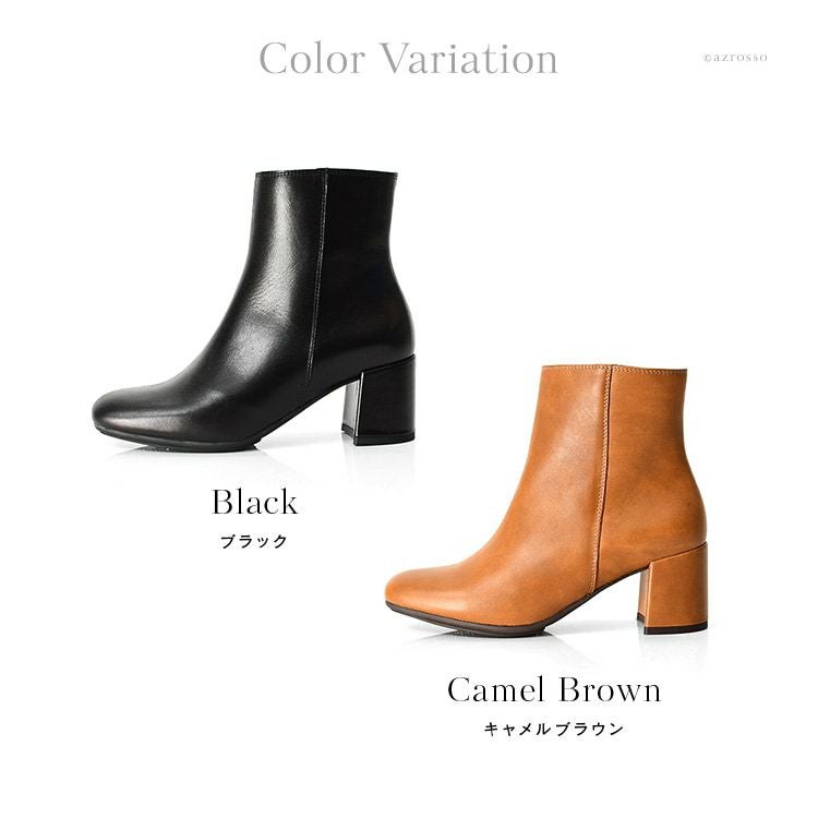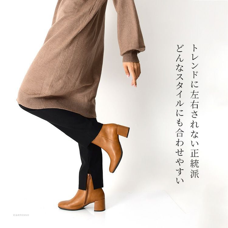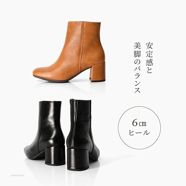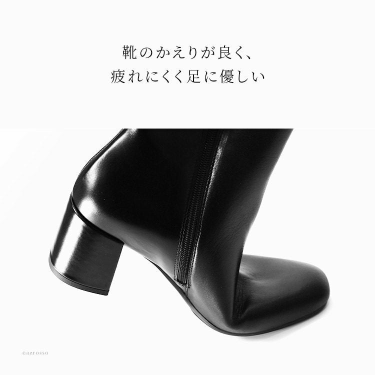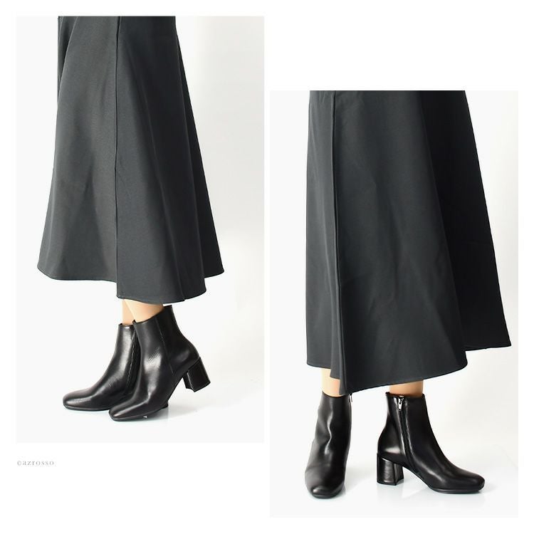 長時間歩いても疲れない ショートブーツ コンフォート 歩きやすい 太ヒール 6cm スクエアトゥ サイドジップ 本革 スペイン製 ブランド ボントレ BONTRE