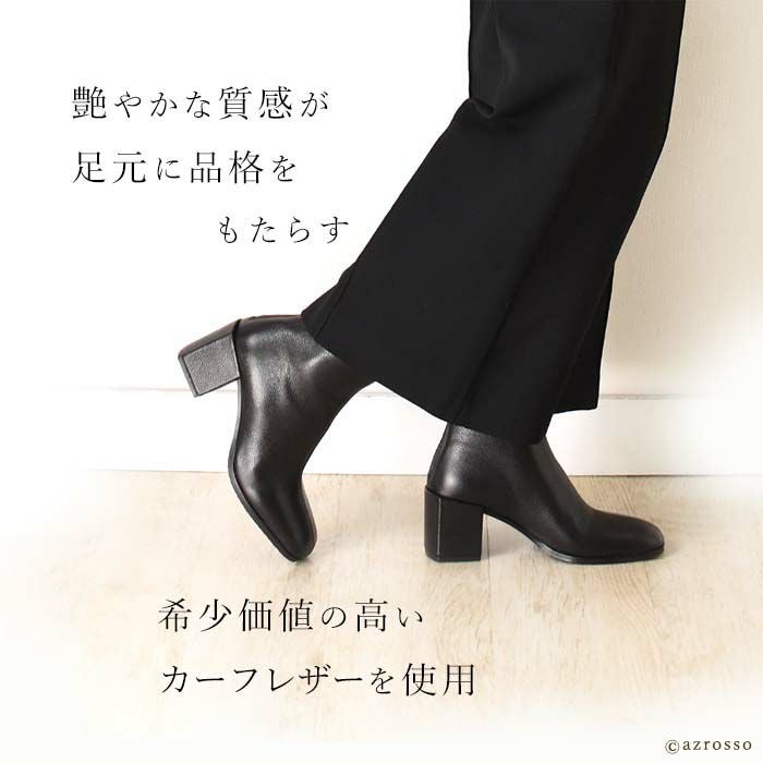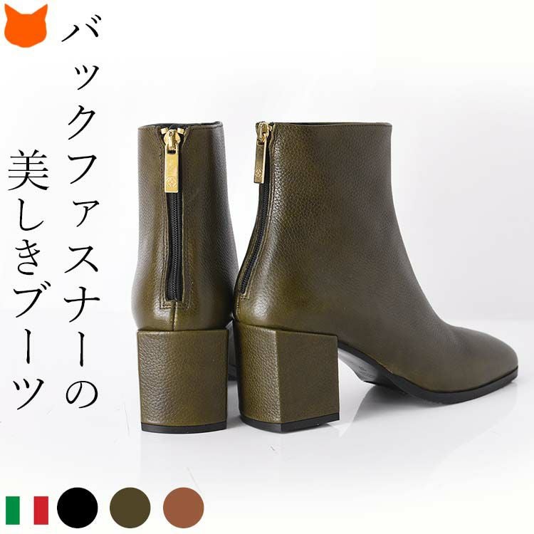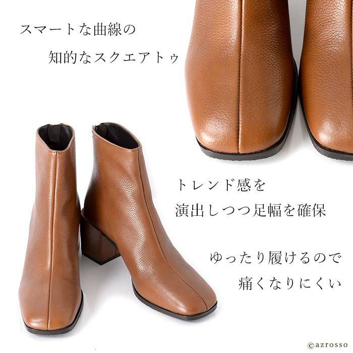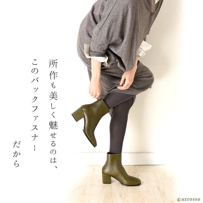 ▼特徴:スクエアトゥ|ショート丈|バックファスナー|ファスナー付き|バックジップ|太ヒール|チャンキーヒール|ミドルヒール|ハイヒール|痛くない|履きやすい|脱ぎやすい|歩きやすい|ショートブーツ|ブーティ