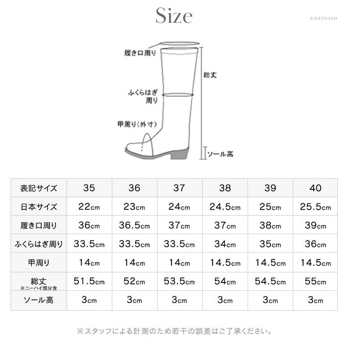 ふくらはぎ周り:33.5cm|33.5cm|33.5cm|34cm|35cm|36cm