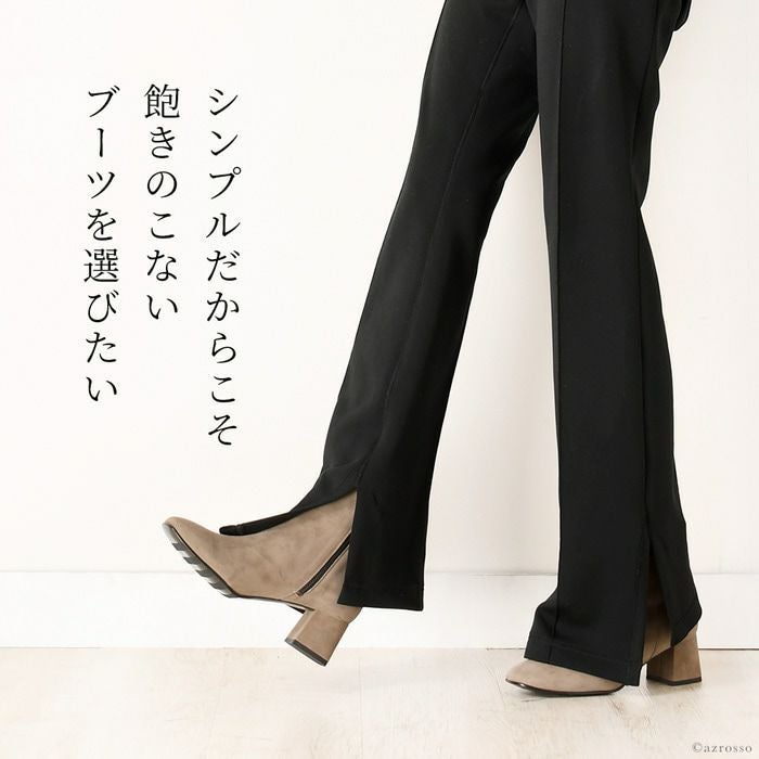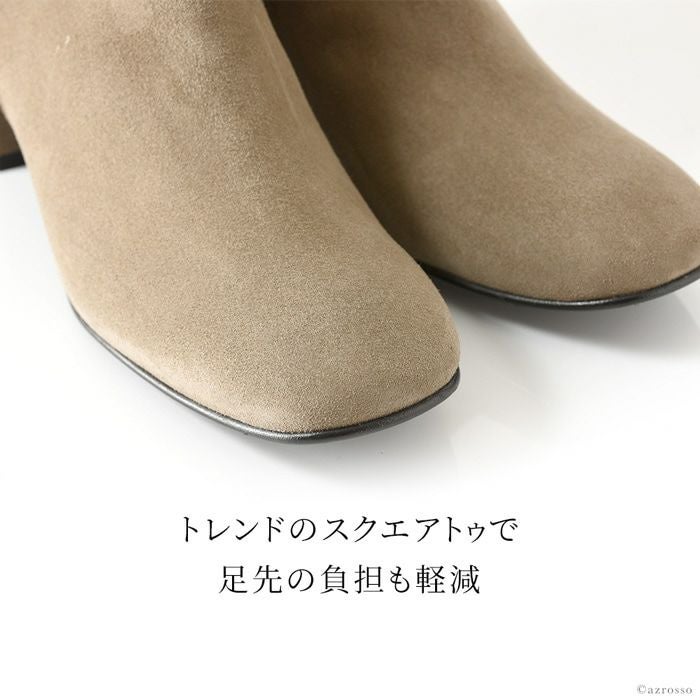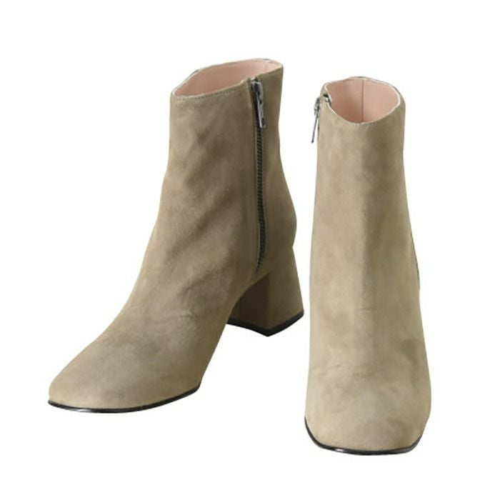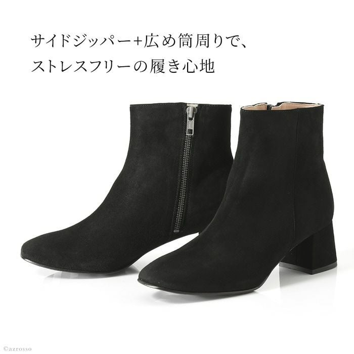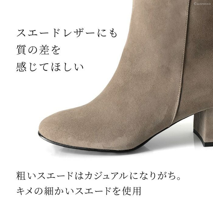 23cm-25.5cm|ヒール6cm スエードブーティー 太ヒール イタリア ブランド コルソローマ 9 CORSO ROMA9 サイドファスナー チャンキーヒール 黒 ブラック トープ ベージュ