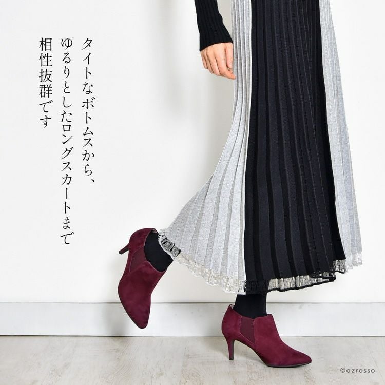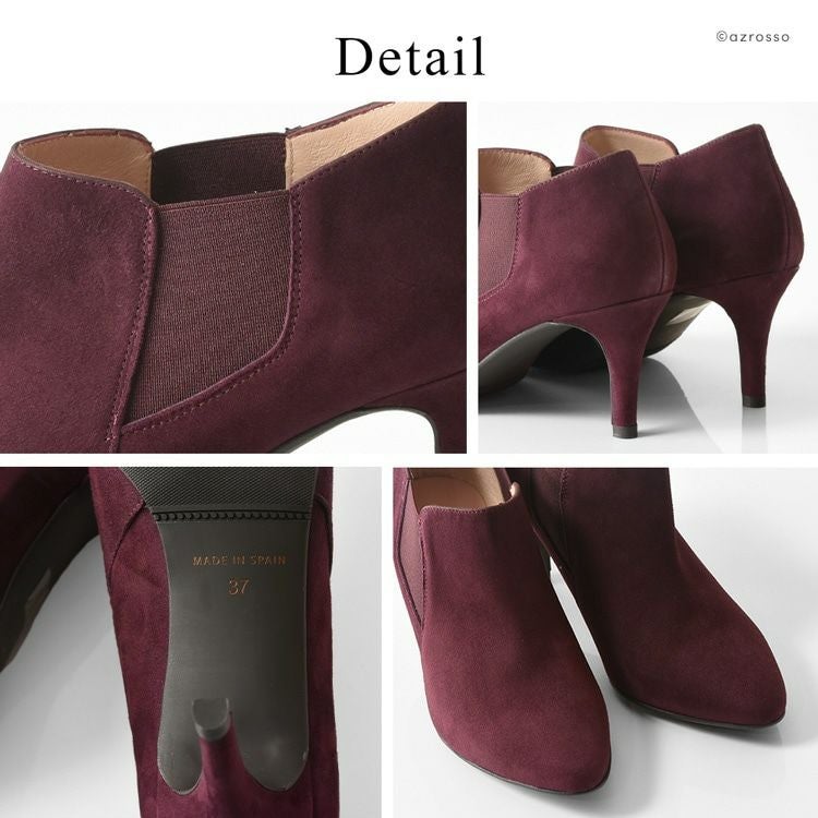 23cm-25.5cm|ヒール6cm スエードブーティ チェルシーブーツ ブランド サイドゴアブーツ 細ヒール 黒 ブラック トープ ブラウン ボルドー バーガンディ ワイン