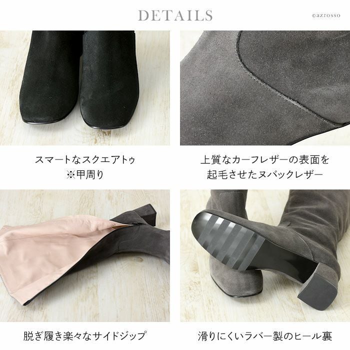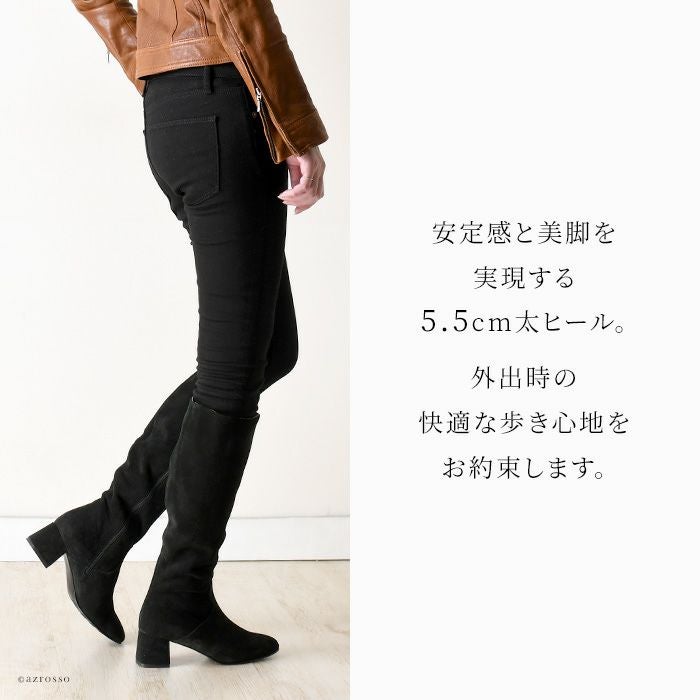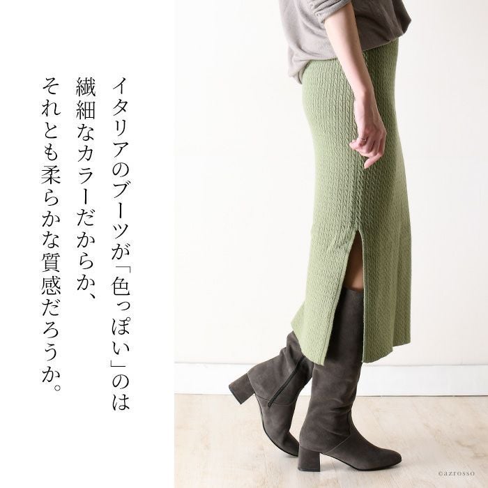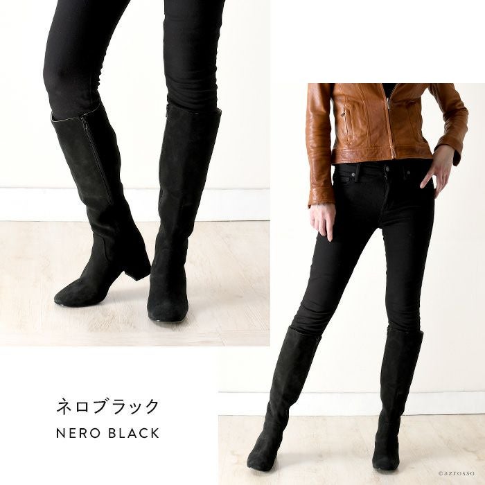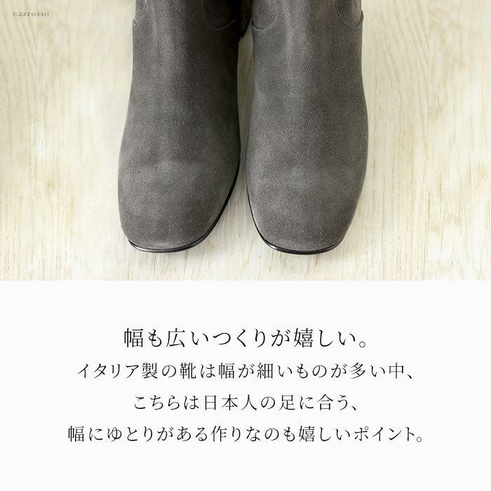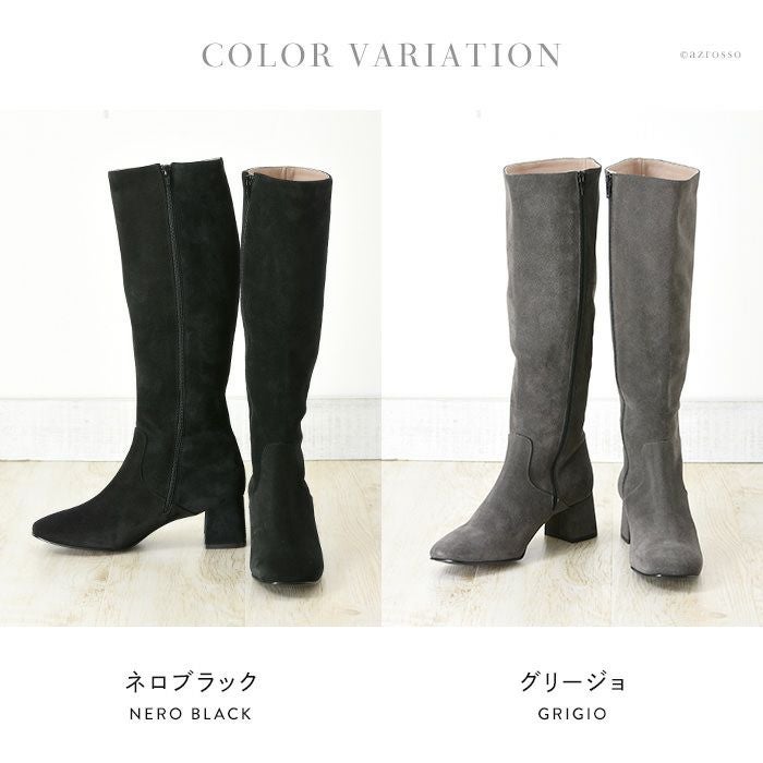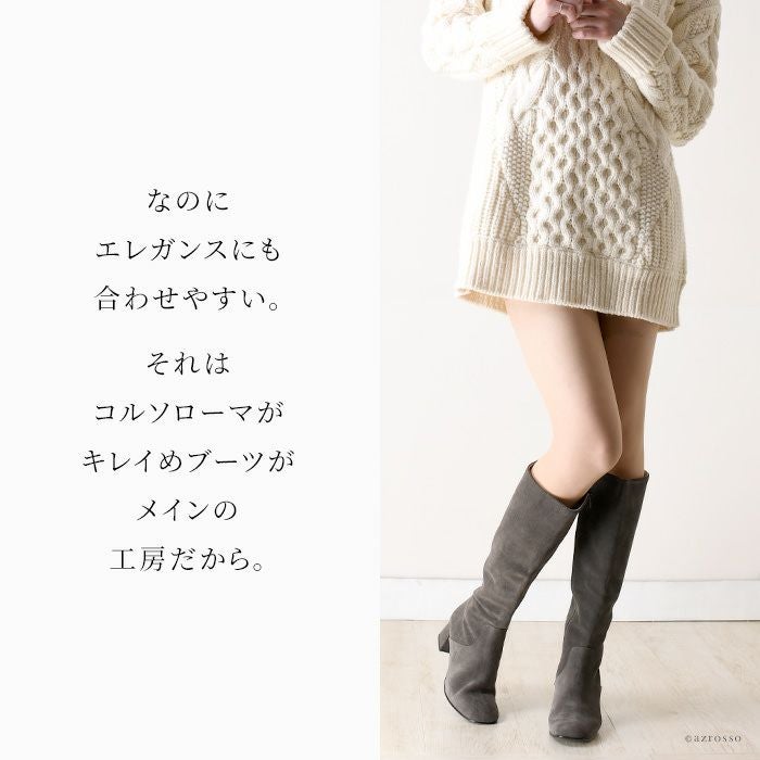 23-25.5cm|幅広で履きやすいイタリア製 ロングブーツ サイドファスナー チャンキーヒール コルソローマ 本革レザー 黒 ブラック グレー