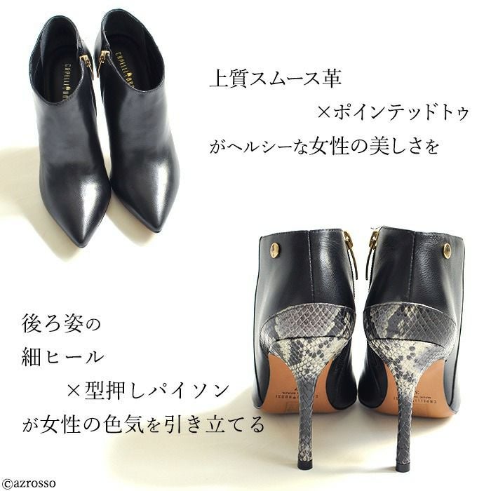 ▼特徴:ハイヒール|ポインテッドトゥ|美脚|細ヒール|ブーティ|本革|衝撃吸収インソール