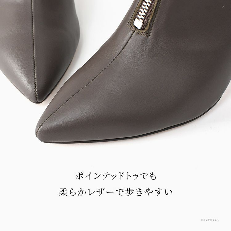 ▼特徴:フロントジップ ファスナー付き ショート ブーツ きれいめ 革 黒 ブラック グレージュ ベージュ 8cm ヒール 疲れない 小さいサイズ 大きいサイズ