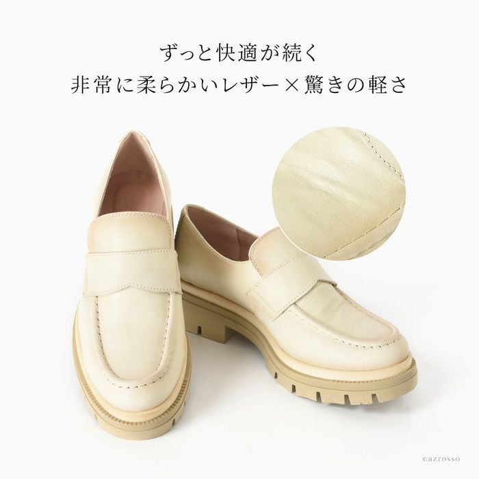 驚きの軽さ&柔らかさの本革ローファーをスペインブランドHISPANITAS(ヒスパ二タス)よりより。国際特許を取得した三種構造のインソールで歩きやすく疲れない快適な履き心地。厚底ヒールで脚長効果抜群 23cm-26cm|コンフォートシューズ レザー 厚底 ローファー マニッシュシューズ スペイン ブランド HISPANITAS ヒスパニタス トープ 白 ホワイト