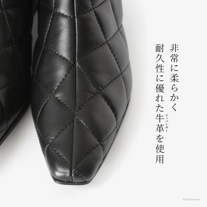 キルティングデザインが秋冬コーデに華やぎをもたらすイタリア製本革ショートブーツ。脱ぎ履きしやすいサイドファスナー付き、脚長効果を叶えながらも歩きやすいチャンキーヒールブーツ Napoleoni ナポレオーニ キルティング ショートブーツ 本革 太ヒール 4cm ローヒール 軽い ブラック クリーム オフホワイト