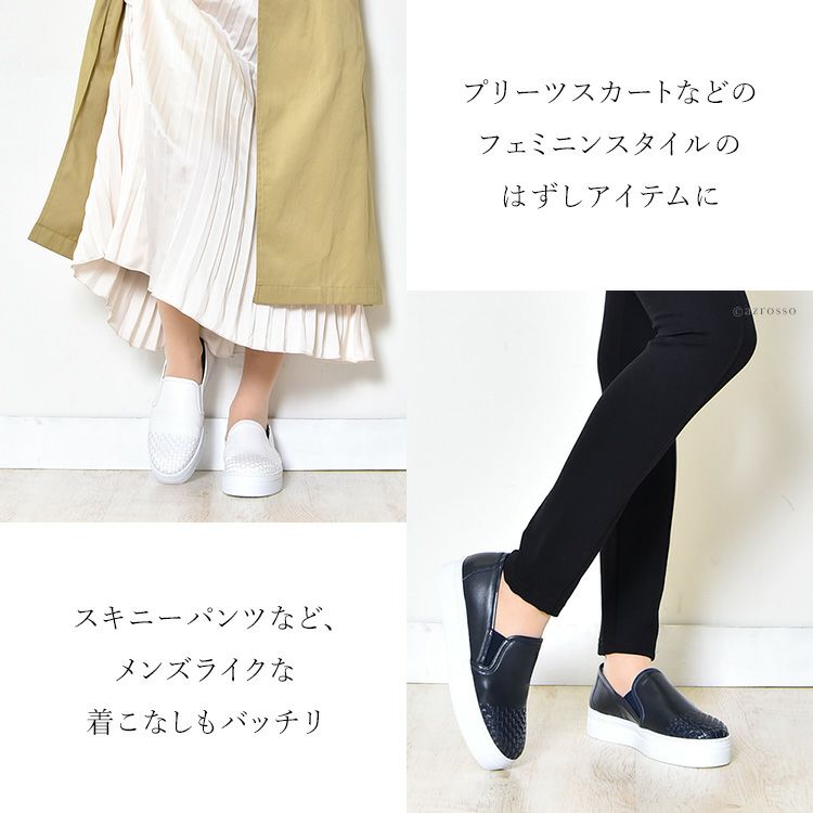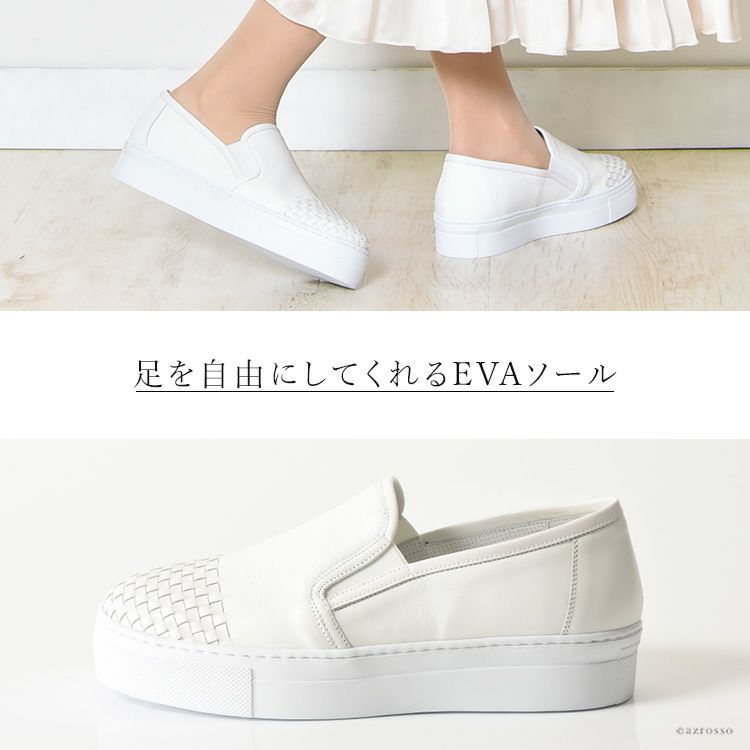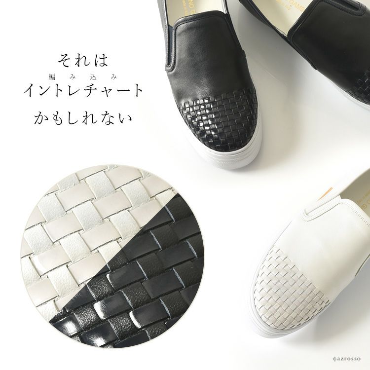 カーフレザー×エナメルレザー スリッポン イントレチャート スニーカー 厚底 白 軽量 ホワイト 本革 ネイビー ブラック 黒