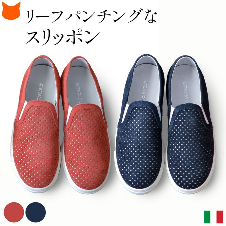 STEFANO GAMBA パンチングレザー スリッポン スニーカー 本革 ステファノガンバ スエード 厚底 本革 レディース サイズ 取扱店店舗