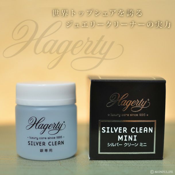 ハガティー社は100年以上、銀磨きやジュエリーケア製品の分野で世界のトップシェアを誇ります。製品を傷付けず、汚れだけを取り除くことにこだわり続け、その製品の品質の高さは世界のアクセサリーの一流ブランドや日本の造幣局などからも評価され、実際に使用されています。