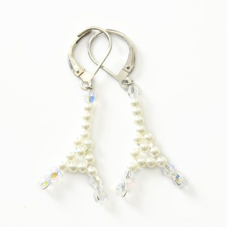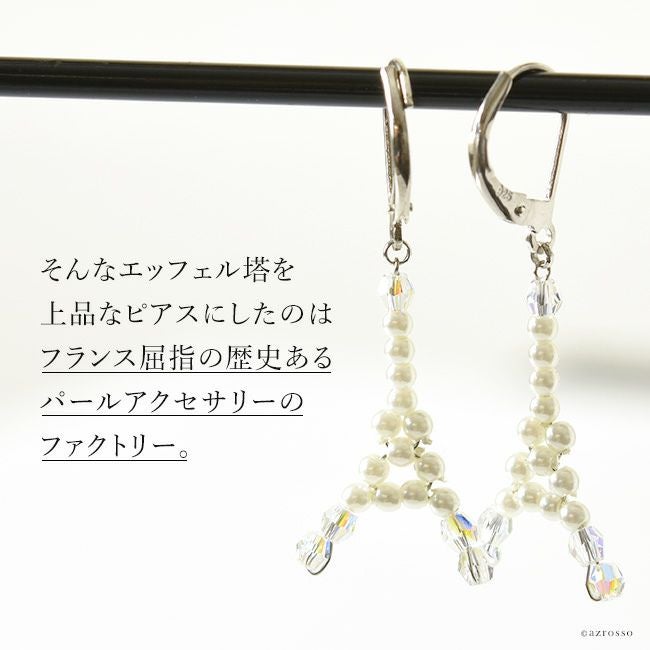 揺れるパールピアス パリのシンボルエッフェル塔モチーフ 世界で唯一、大阪でしか作れない極小パール、「ユレアパール」で作った大人かわいい上質ピアス フランス製 真珠 ホワイト