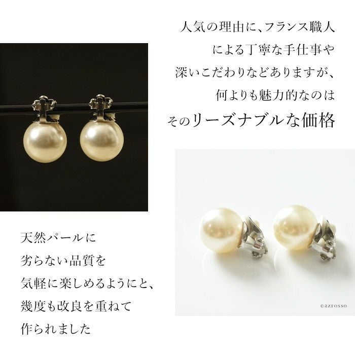 クチュールパール イヤリング クリップ式 パール 大粒 真珠 一粒 フランス製
