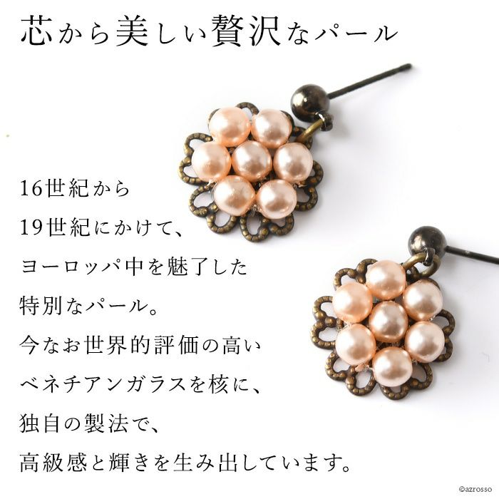 水の都ベネチアより届いた、フラワー パールピアス【パールドコタラッテ】パール/真珠/ピアス/4mm/粒パール/小さい/花/イタリア製/ヴィンテージ/アンティーク/ブランド/インポート/ホワイト/白/ピンク/プレゼント/