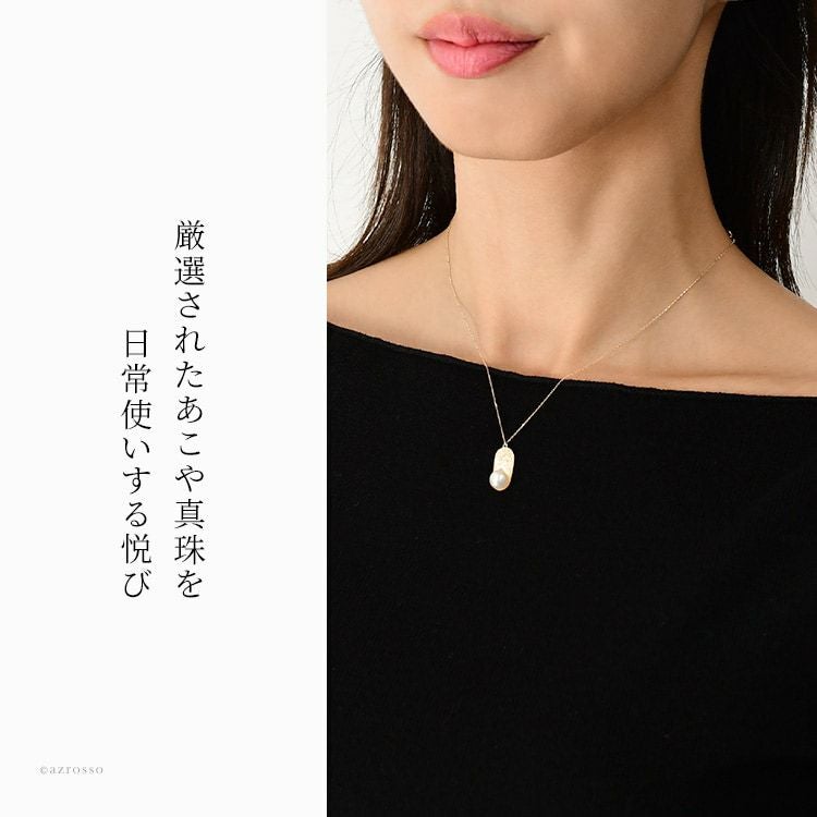 日本製 パール ネックレス 6mm K10 イエロー ゴールド アクセサリー ペンダント シンプル ジュエリー カジュアル バロック真珠 Behind