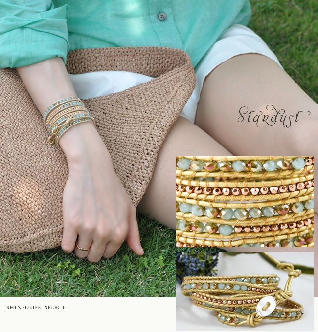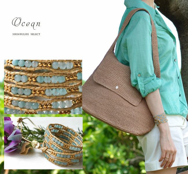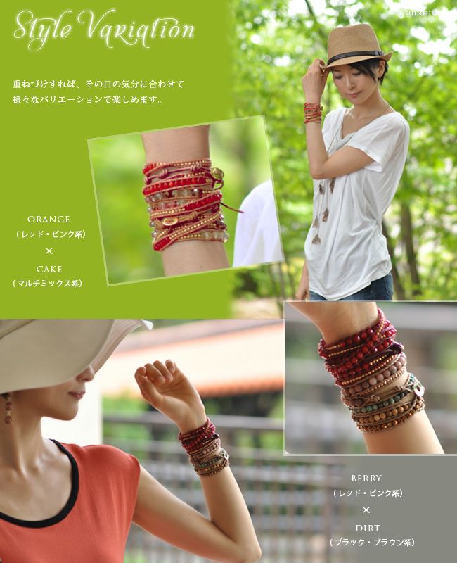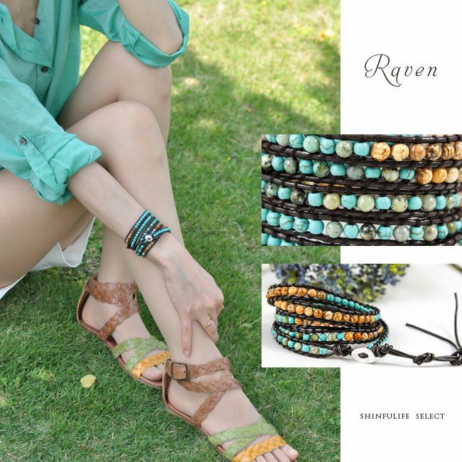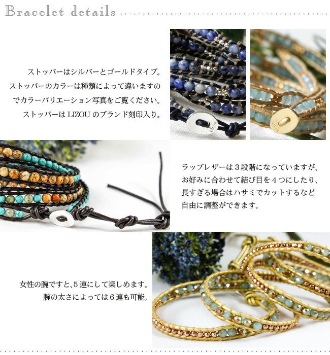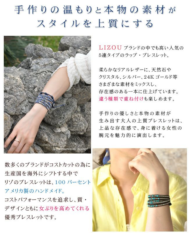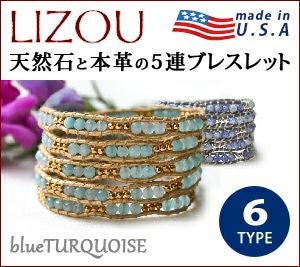 【ブルー・ターコイズ系】本革 5連 ラップブレスレット アメリカ製ブランド【LIZOU】リゾ インポート レディース メンズ