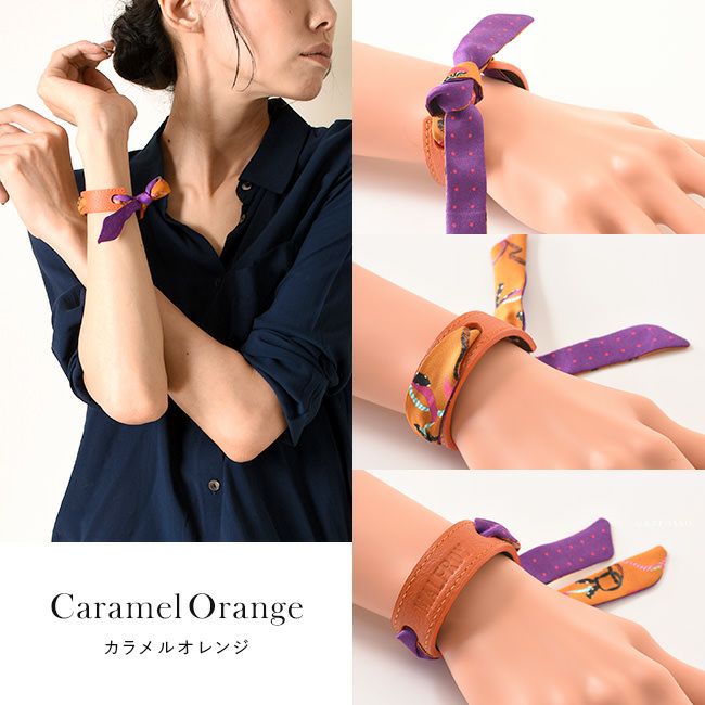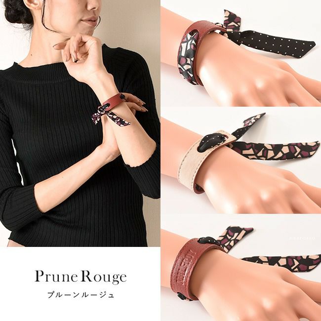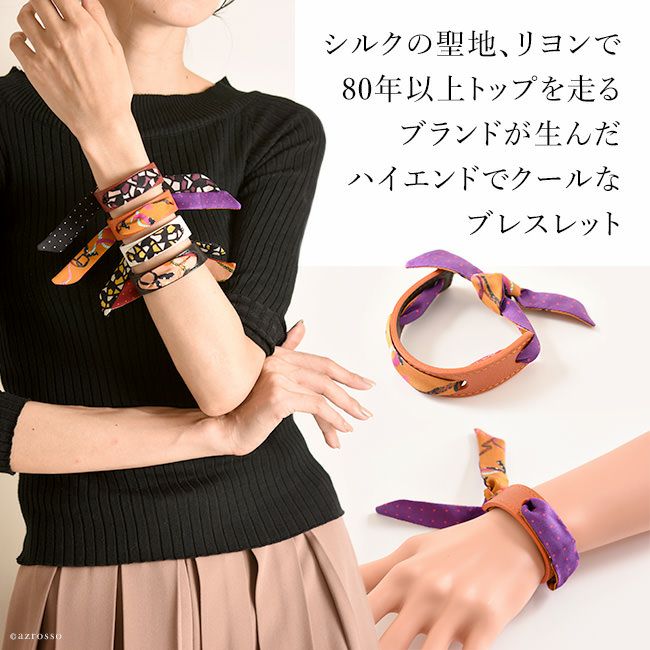 フランスシルク×本革レザー ブレスレット レディース ブランド マルフロイ MALFROY フランス製