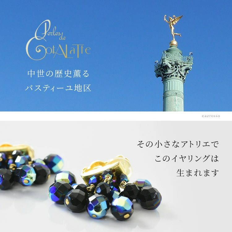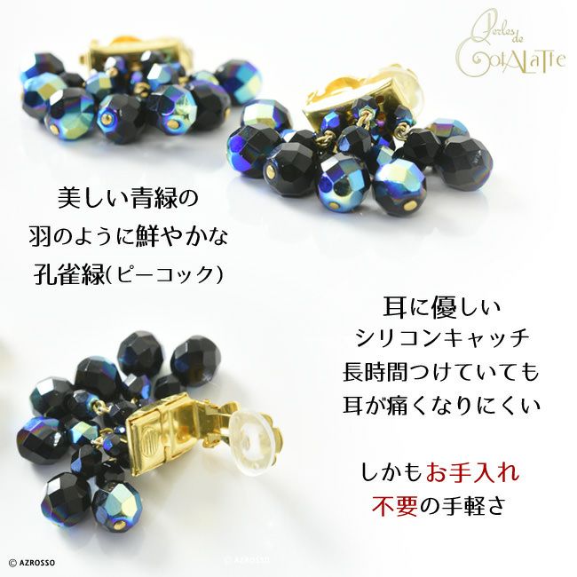 イヤリング フレンチガラス ピーコック フランス製 ジュエリーブランド パールドコタラッテ ノンホールピアス
