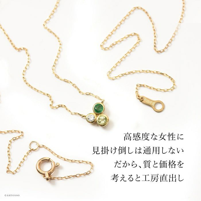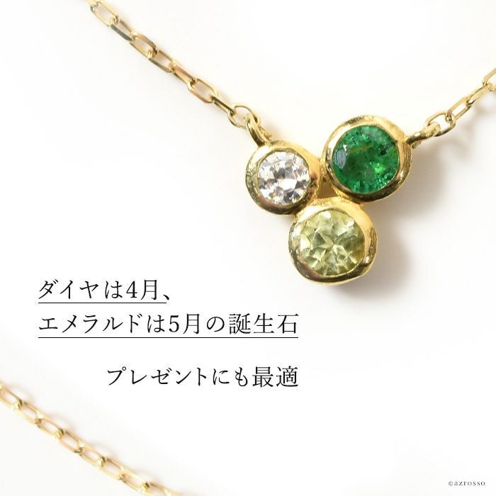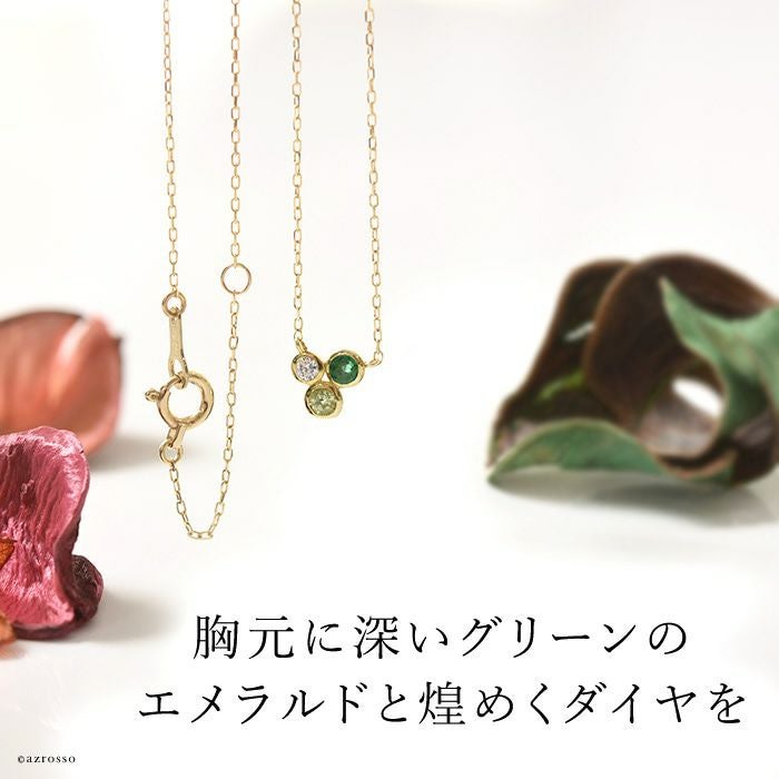 エメラルド ネックレス ダイヤモンド 3石 k10 ゴールド コタラッテピーポー 日本製 5月 誕生石 プレゼント