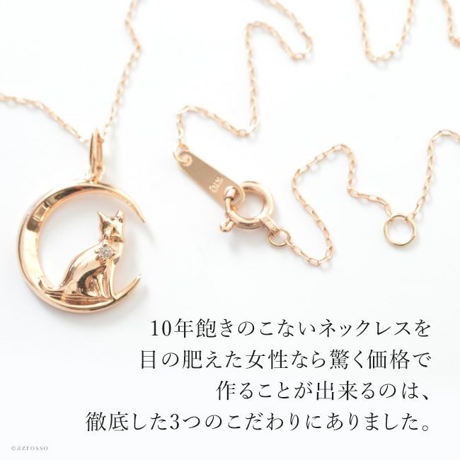 ピンク ゴールド ネックレス 猫 ペンダント ダイヤ 三日月 シンプル コタラッテピーポー 日本製 40cm 誕生石 プレゼント