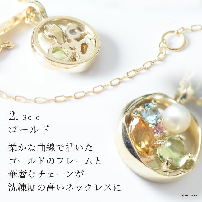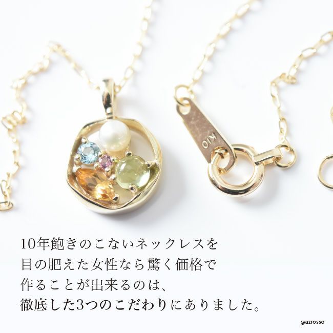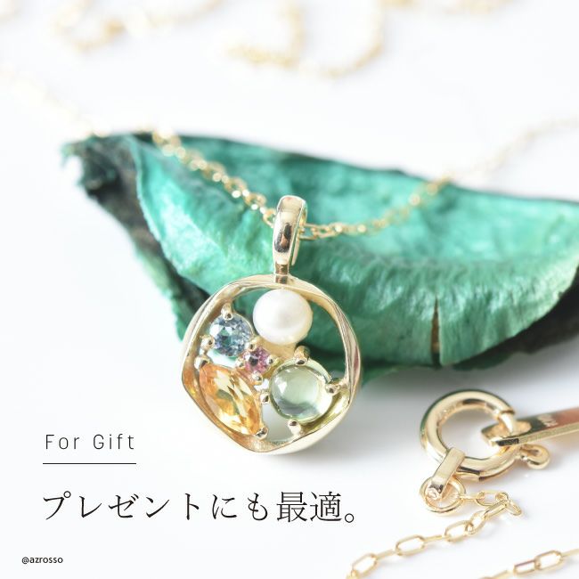 ゴールド ネックレス ラウンド ペンダント パール ピンク トルマリン ペリドット シトリン ブルートパーズ 日本製 40cm コタラッテピーポー