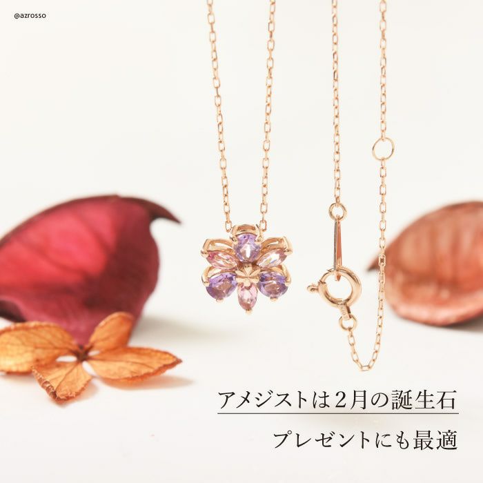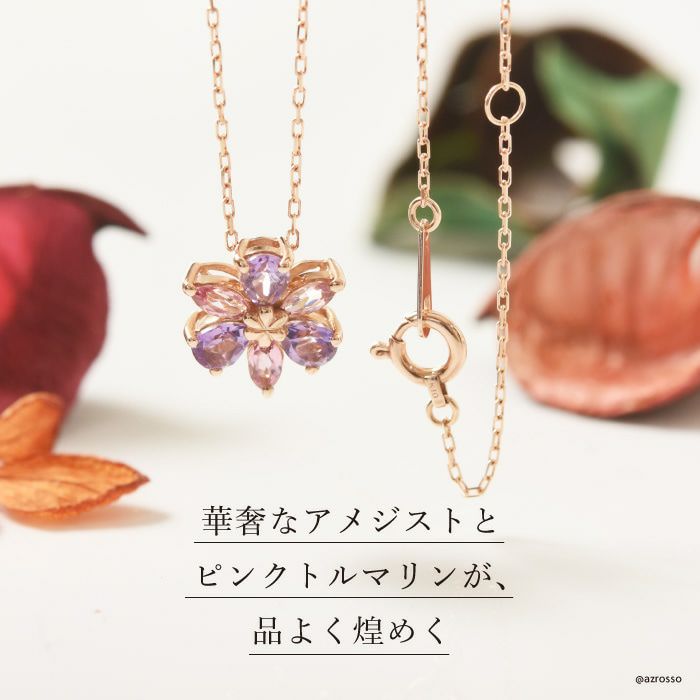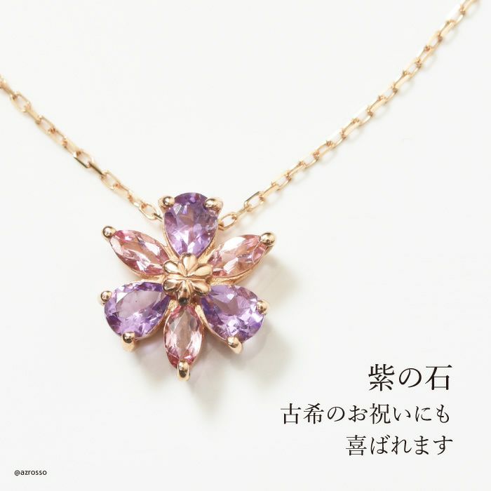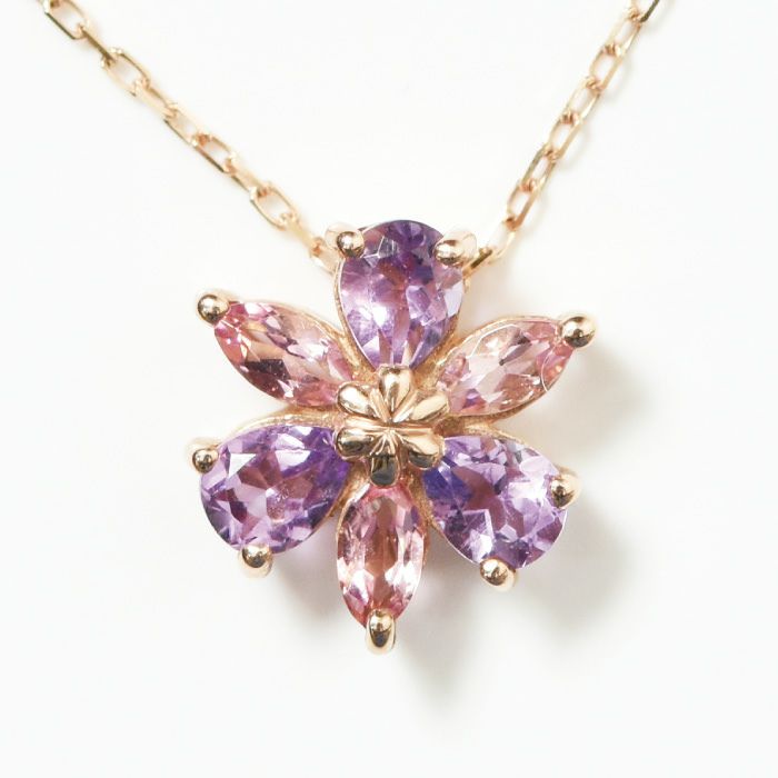 アメジスト ピンクトルマリン ネックレス 花 フラワー k10 ゴールド コタラッテ 日本製 2月 誕生石 プレゼント 古希祝い