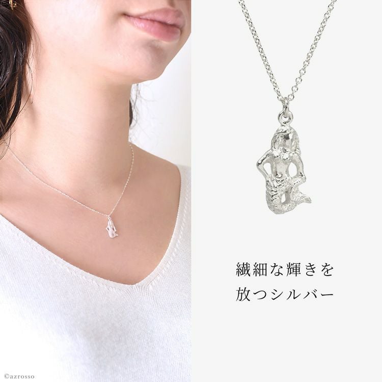 人魚 ネックレス マーメイド モチーフ 小さい シルバー アクセサリー シルバー925 小ぶり ペンダント アジャスター付き 人魚姫 小さめ シンプル ジュエリー【通常ネコポス配送】